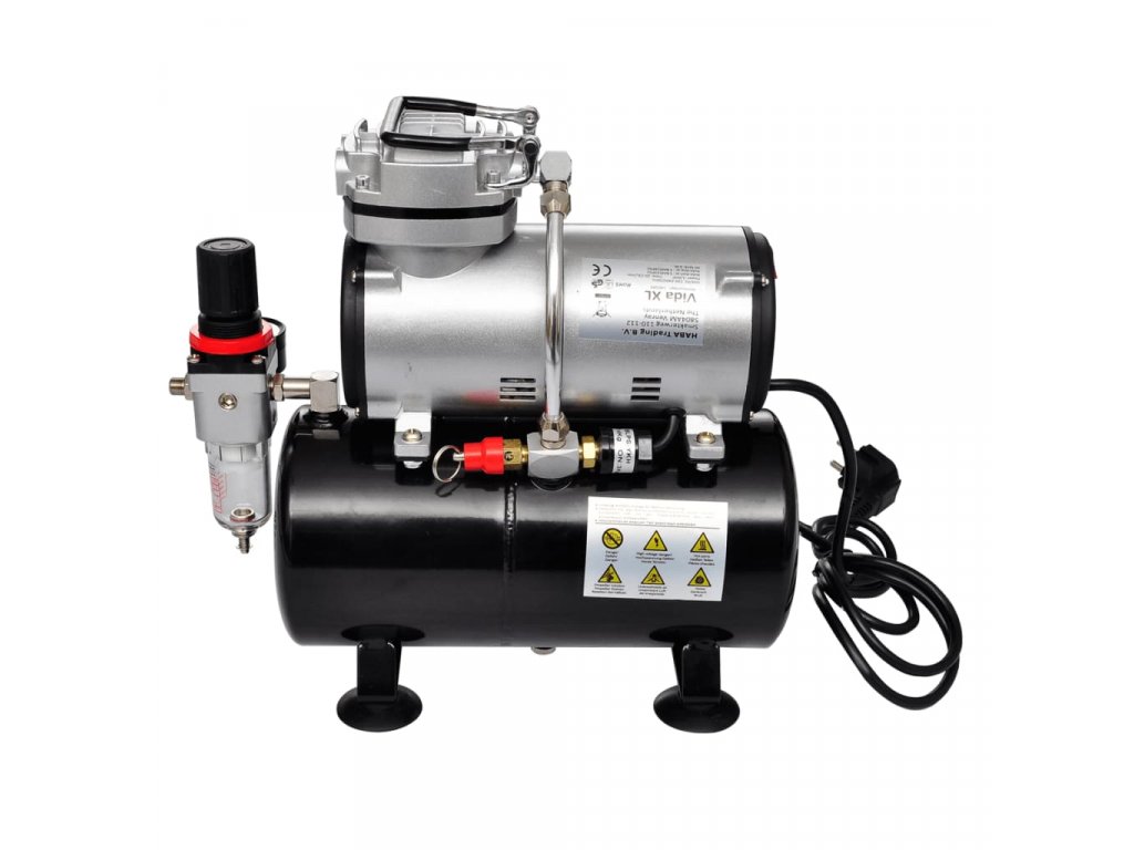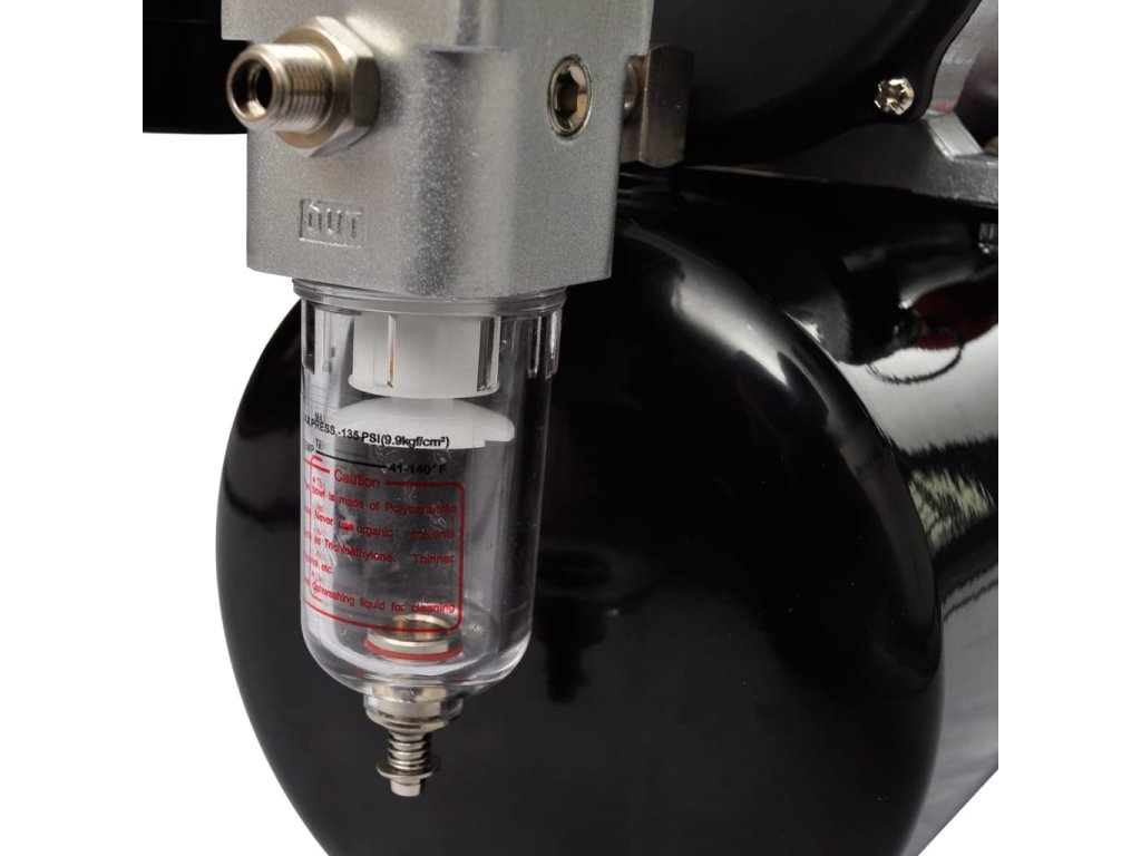 Tento bezolejový pístový kompresor s 3litrovou vzduchovou nádrží, regulací tlaku vzduchu, vzduchovým filtrem a manometrem je vhodný pro všechny typy airbrush s tryskou o velikosti 0,2 až 1,0 mm.