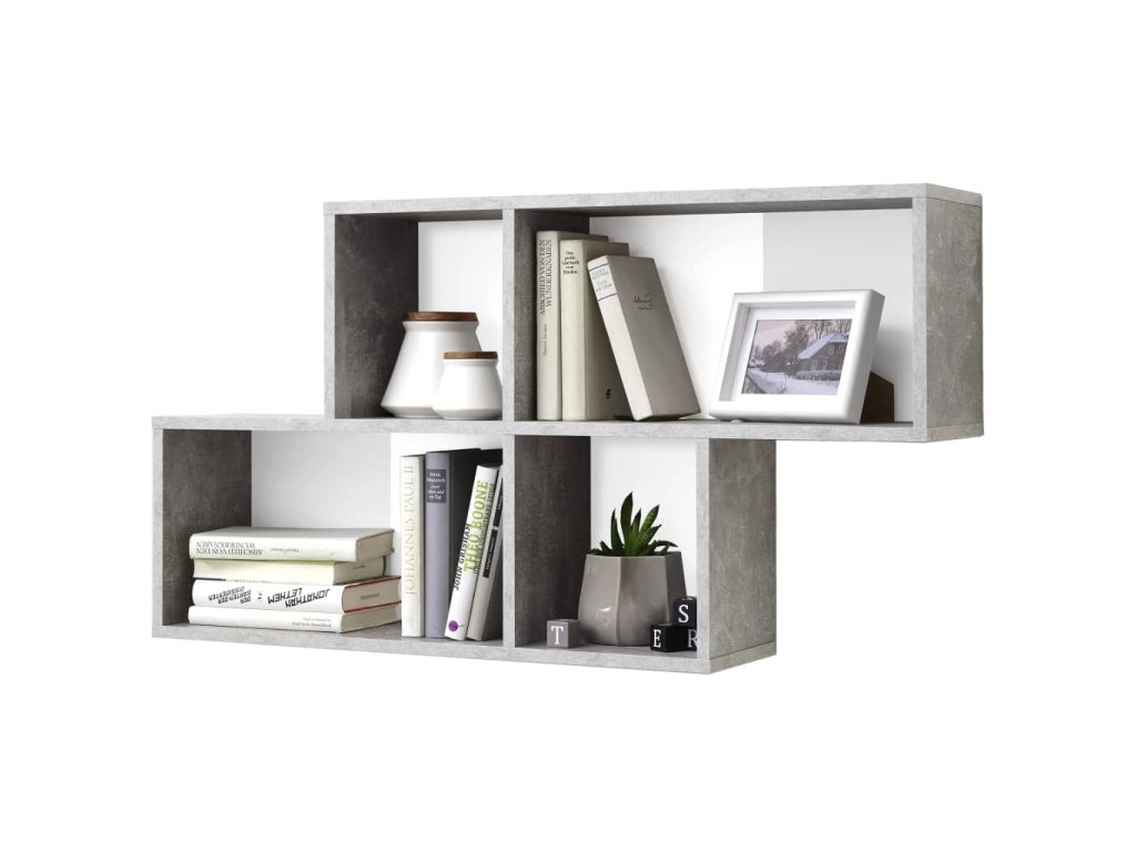 FMD Nástěnná police se 4 přihrádkami betonově šedá a bílá