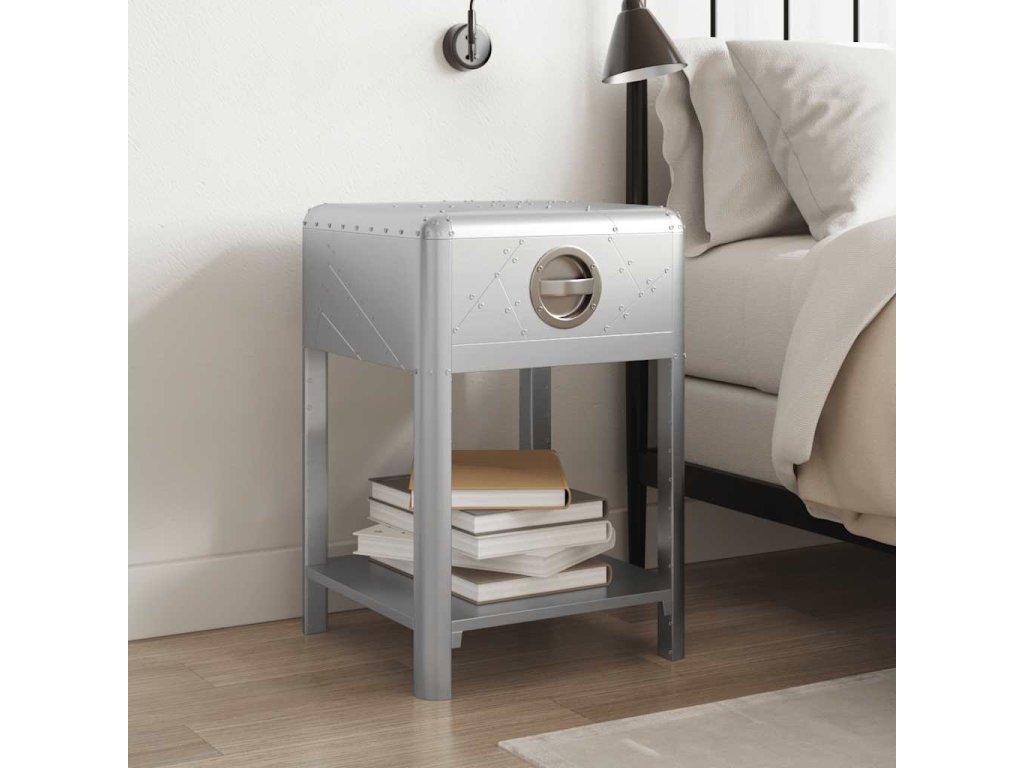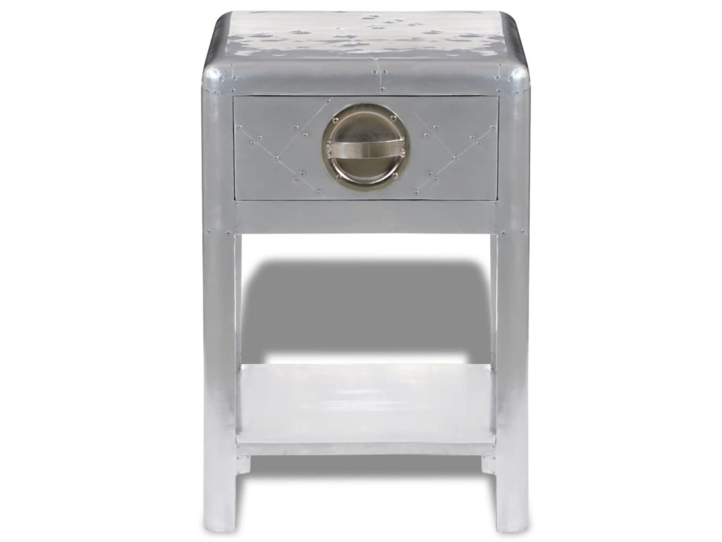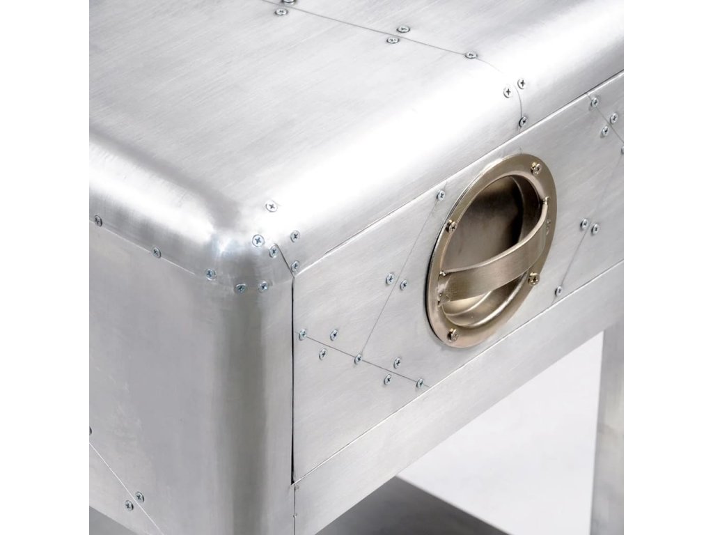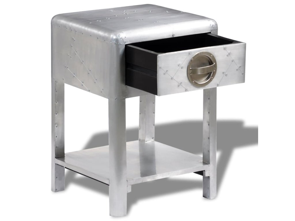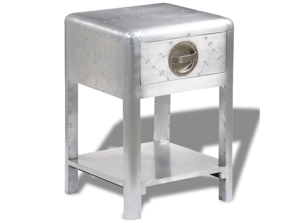 Letecký hliníkový vintage odkládací stolek s 1 zásuvkou