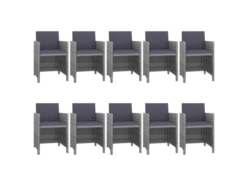 Balení obsahuje 1 stůl, 10 židlí a 20 polstrů. Poznámka: Doporučujeme vám soupravu za deště, sněhu a mrazu přikrýt.