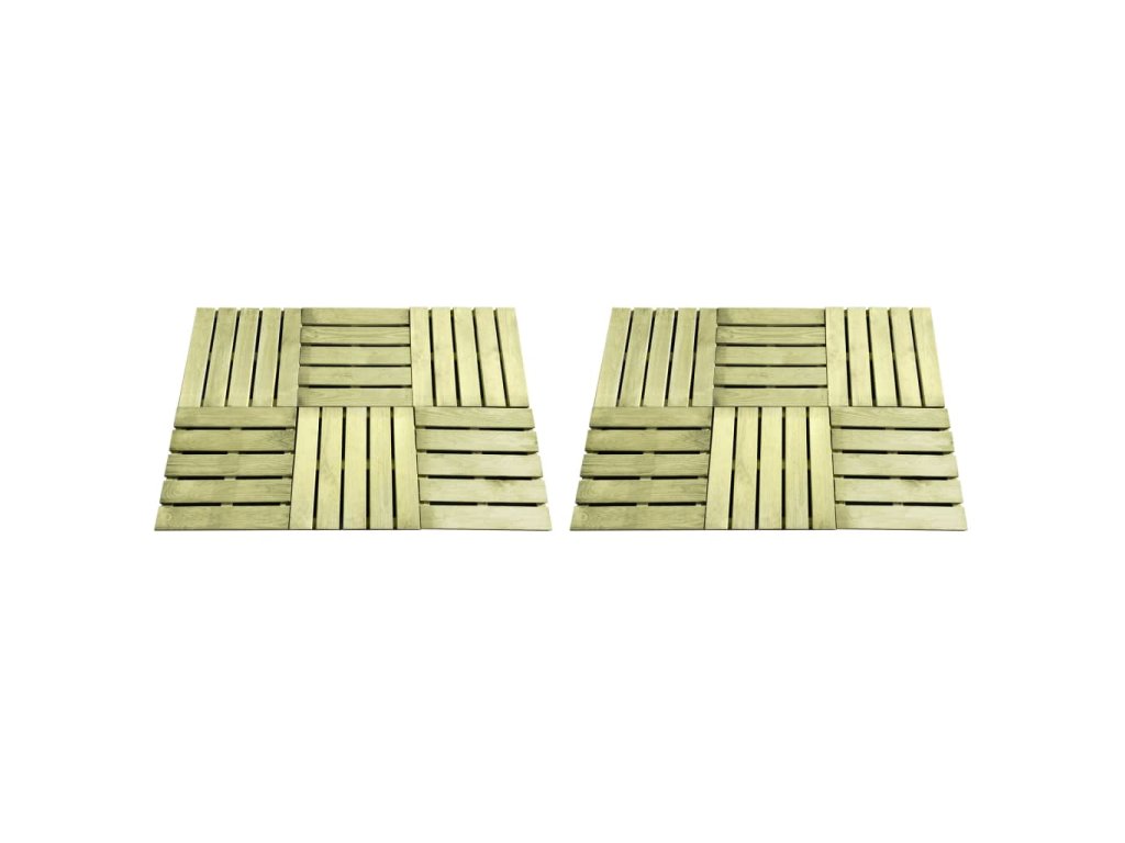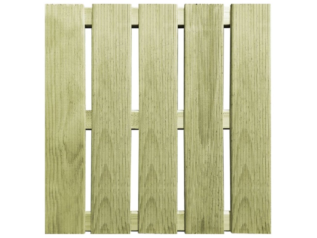 Terasové dlaždice jsou vyrobené z impregnovaného borového dřeva. Jedná se o velmi odolné dřevo, které nepodléhá hnilobě ani vlivům počasí. Překrásná kresba dřeva propůjčuje dlaždicím rustikální kouzlo a jedinečný, neopakovatelný vzhled. Balení obsahuje 12 terasových dlaždic.