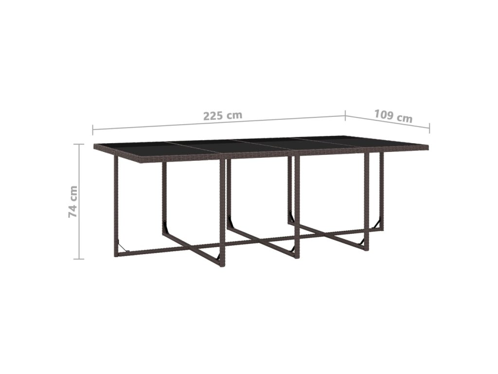 Tento ratanový jídelní set s elegantním designem bude skvělou volbou pro stolování pod širým nebem nebo relaxaci na zahradě. Vyrobena z odolného a nepromokavého PE ratanu, tato jídelní sada je snadno čistitelná, odolná proti opotřebení a vhodná pro každodenní použití. Ocelové rámy s práškovým nástřikem dělají stůl a židle silné a robustní. Díky svým lehkým konstrukcím se všemi součástmi snadno pohybuje. Skleněná deska se snadno čistí vlhkým hadříkem.