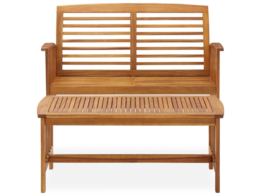 Set zahradního nábytku je zhotovený z masivního akáciového dřeva s olejovou úpravou, je stabilní a má dlouhou životnost. Konferenční stolek z masivní dřevěnou stolní deskou s lamelovým designem poslouží jako perfektní odkládací plocha pro vaše občerstvení, mísy s ovocem, dekorativní předměty a další nezbytnosti. Na lavičce s opěradlem a loketními opěrkami se velmi pohodlně sedí.