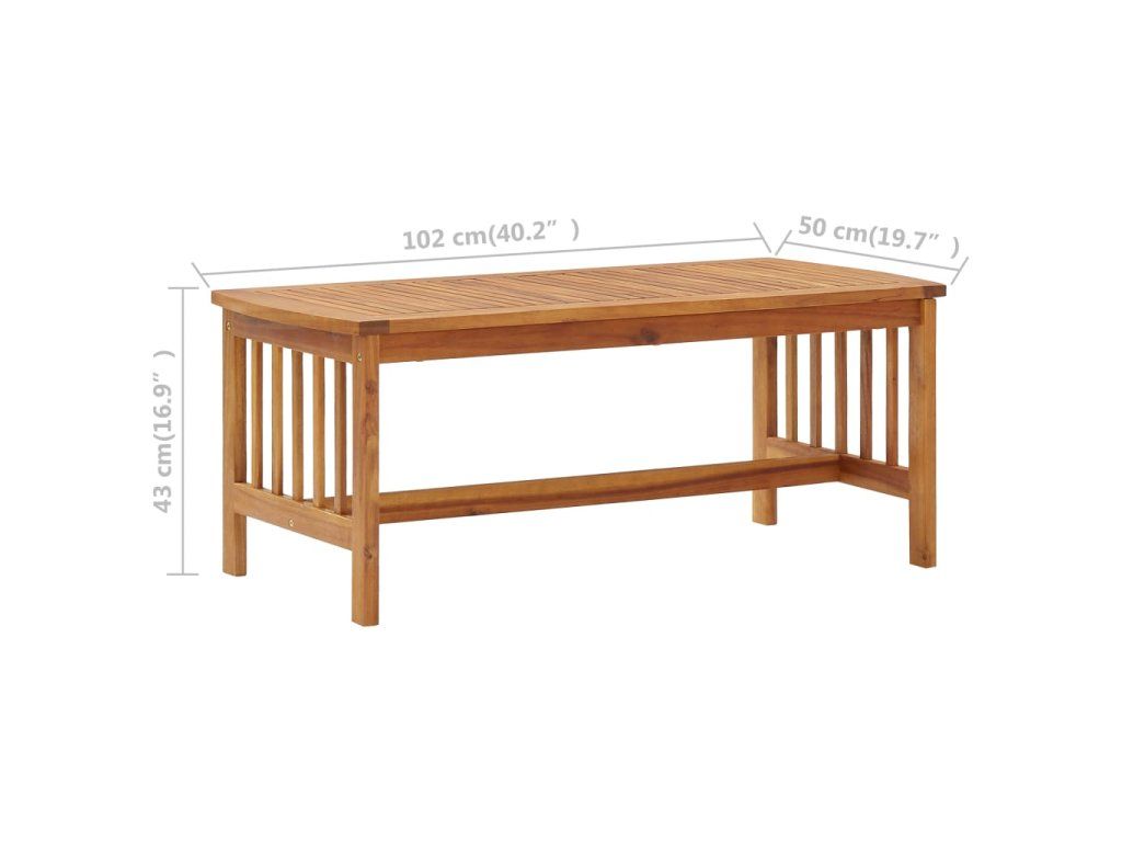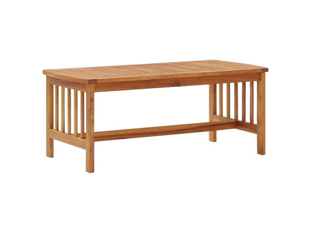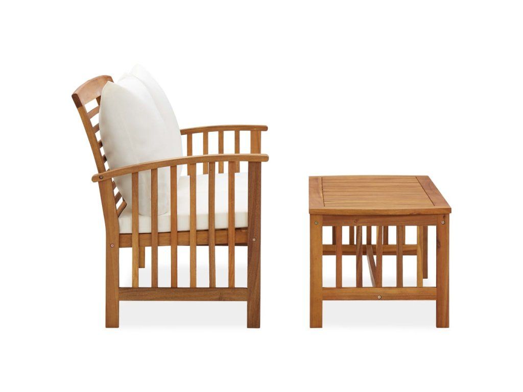 Set zahradního nábytku je zhotovený z masivního akáciového dřeva s olejovou úpravou, je stabilní a má dlouhou životnost. Konferenční stolek z masivní dřevěnou stolní deskou s lamelovým designem poslouží jako perfektní odkládací plocha pro vaše občerstvení, mísy s ovocem, dekorativní předměty a další nezbytnosti. Podušky na sedák a polštář za záda přispívají k pohodlnému posezení, stejně jako opěradlo a loketní opěrky.