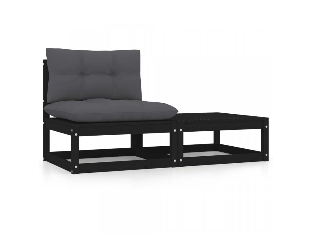 Marketos 2dílná zahradní souprava s poduškami černá masivní borovice