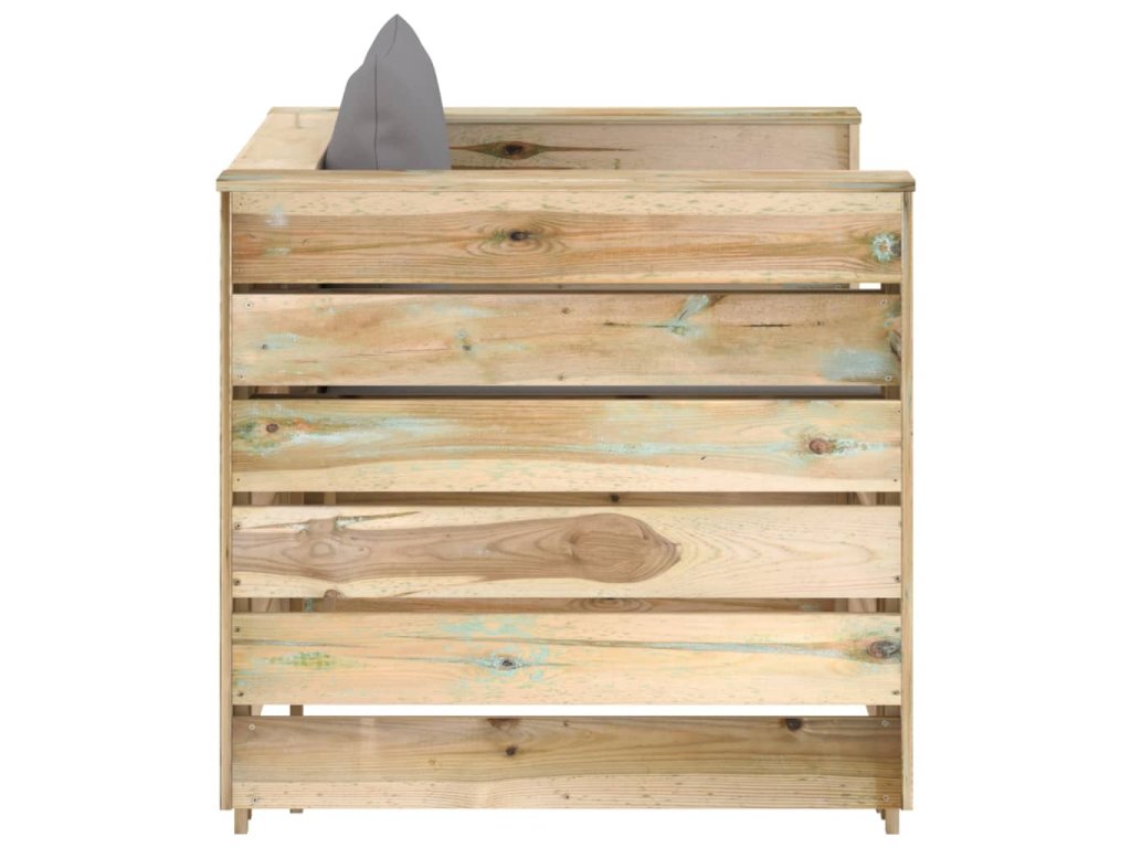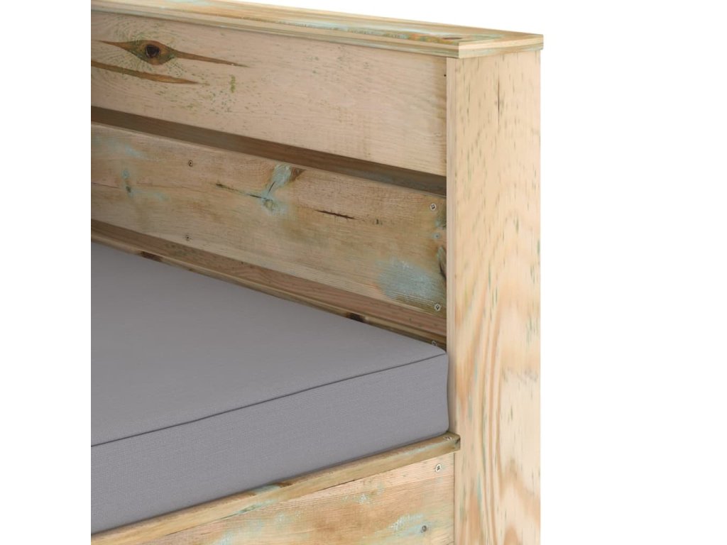 Sedací souprava z palet je zhotovená z impregnovaného borového dřeva, je tedy odolná a nepodléhá klimatickým vlivům. Zahradní sedací set má pevnou konstrukci a nevyžaduje téměř žádnou údržbu. Součástí balení jsou i měkké, silně polstrované podušky, sedací souprava je tudíž také velmi pohodlná. Modulární design soupravy umožňuje vytvářet různá uspořádání a kombinovat ji s dalšími modulárními segmenty podle vašich představ.