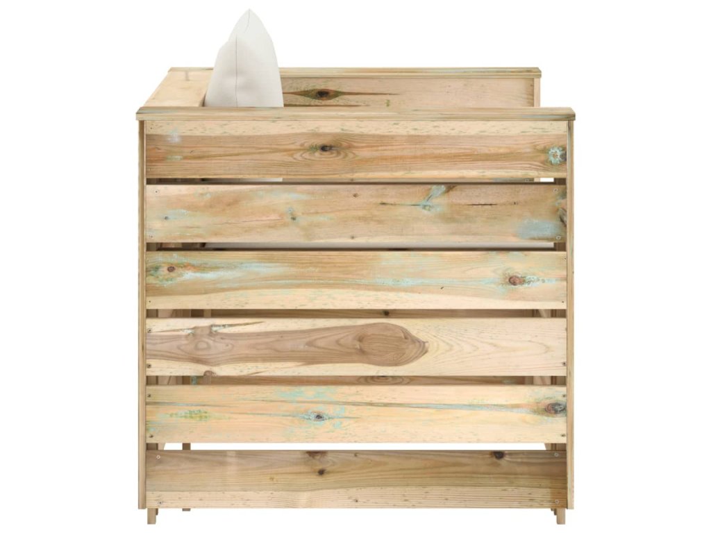 Sedací souprava z palet je zhotovená z impregnovaného borového dřeva, je tedy odolná a nepodléhá klimatickým vlivům. Zahradní sedací set má pevnou konstrukci a nevyžaduje téměř žádnou údržbu. Součástí balení jsou i měkké, silně polstrované podušky, sedací souprava je tudíž také velmi pohodlná. Modulární design soupravy umožňuje vytvářet různá uspořádání a kombinovat ji s dalšími modulárními segmenty podle vašich představ.