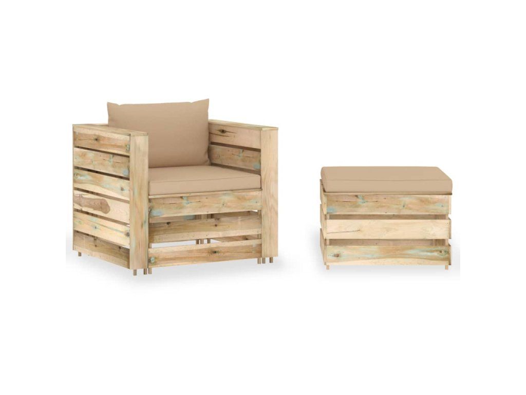 Marketos 2dílná zahradní souprava s poduškami zeleně impregnované dřevo