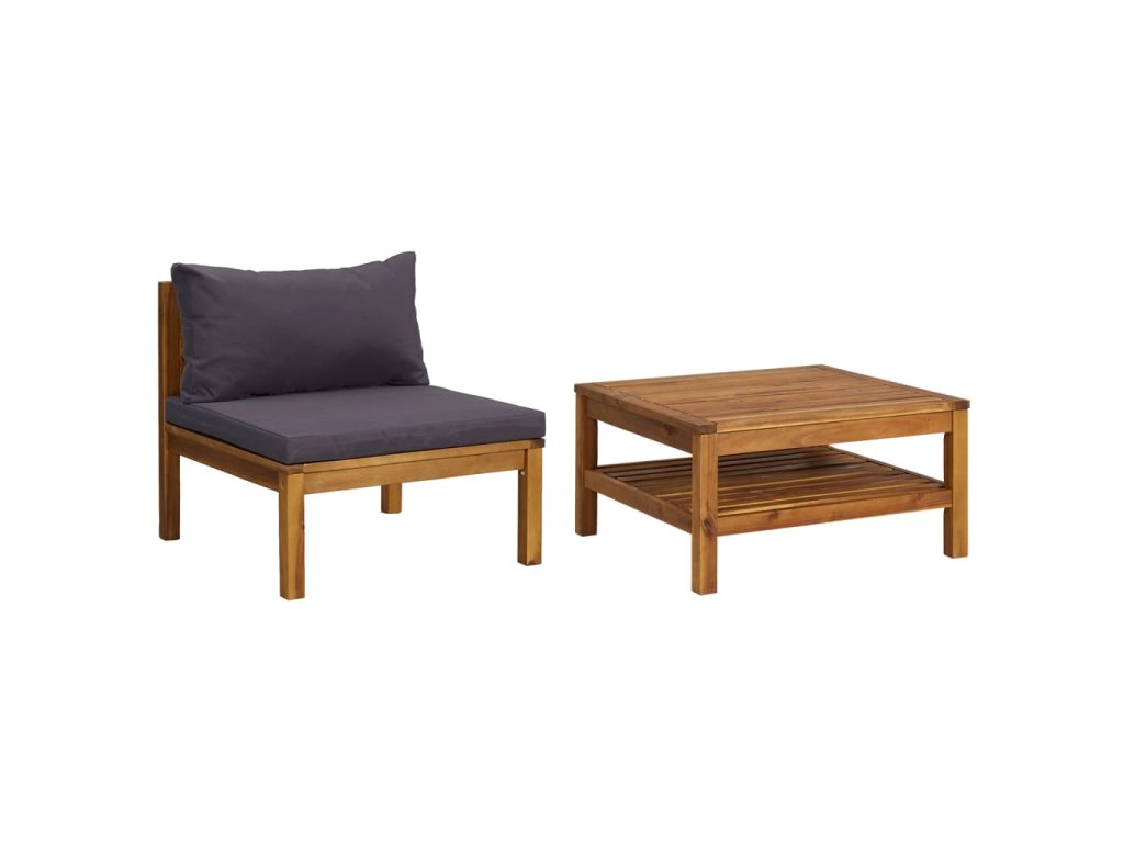 Marketos 2dílná zahradní souprava tmavě šedé podušky masivní akácie