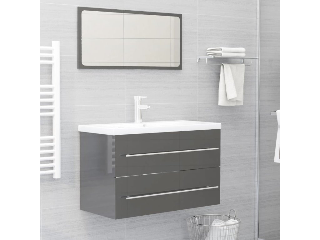 Marketos 2dílný set koupelnového nábytku šedý vysoký lesk dřevotříska