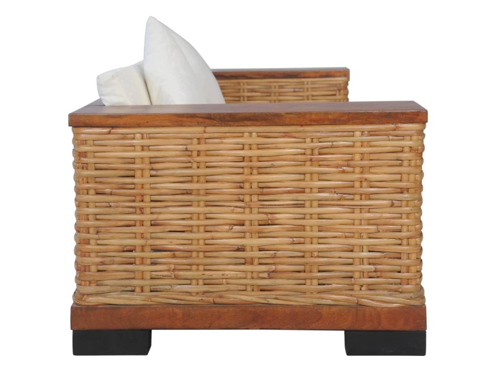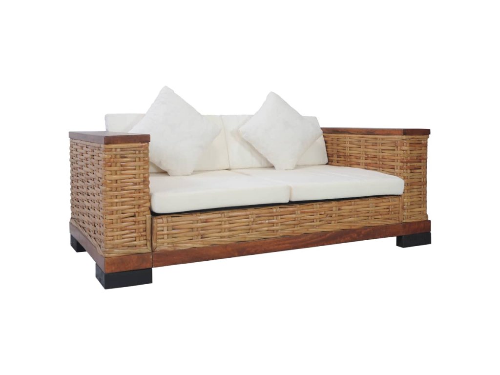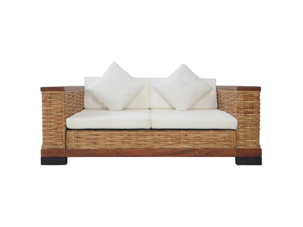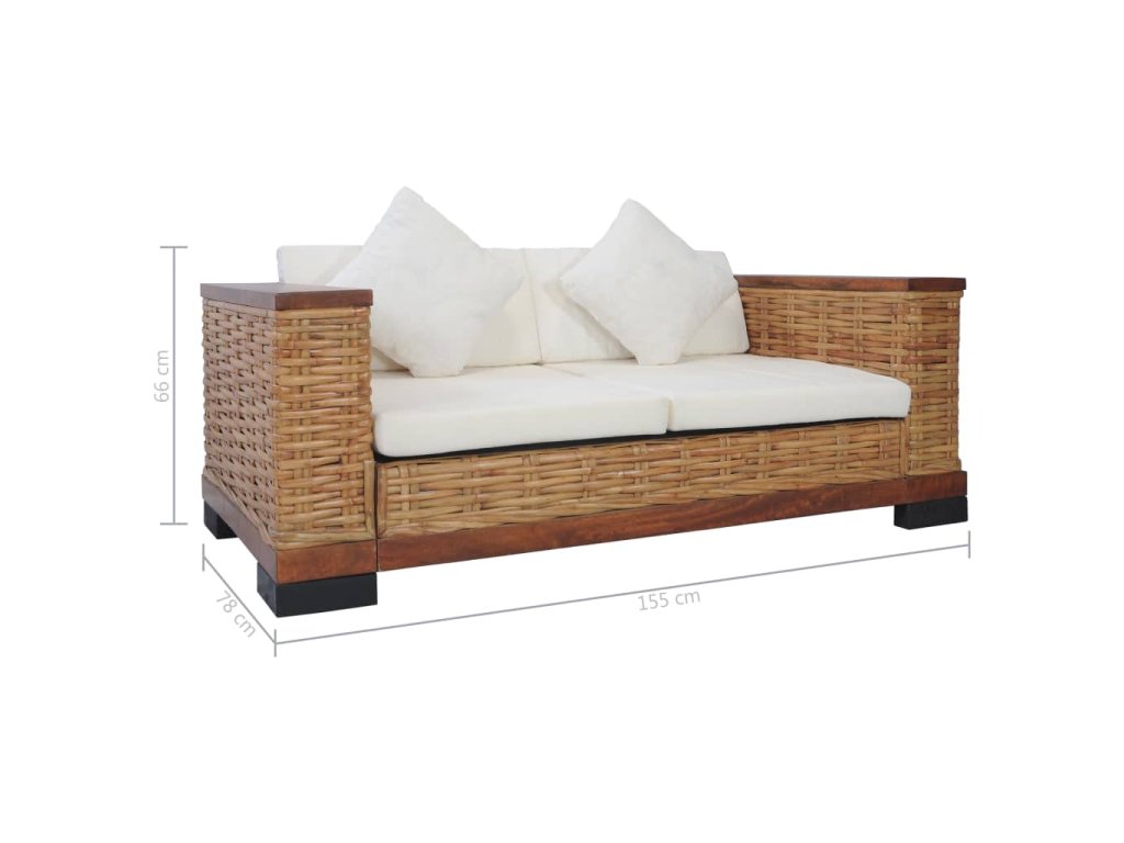 Pohovka je vyrobená z pravého ratanu, je tudíž odolná, skvěle se hodí pro každodenní použití a zároveň se snadno čistí. Má robustní dřevěný rám, který má dlouhou životnost a je mimořádně stabilní. Tlusté podušky na sedák a na opěradlo, stejně jako i přiložené polštářky se dobře přizpůsobují vašemu tělu a jejich snímatelné potahy se dají prát. Také široké područky zvyšují pohodlí při sezení.