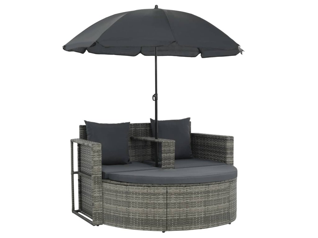 Marketos 2místná zahradní pohovka podušky a slunečník šedá polyratan