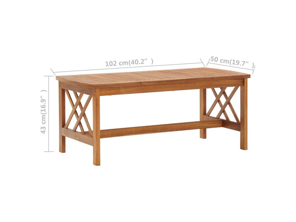 Set zahradního nábytku je zhotovený z masivního akáciového dřeva s olejovou úpravou, je stabilní a má dlouhou životnost. Konferenční stolek z masivní dřevěnou stolní deskou s lamelovým designem poslouží jako perfektní odkládací plocha pro vaše občerstvení, mísy s ovocem, dekorativní předměty a další nezbytnosti. Na lavičce s jemně zaobleným opěradlem a loketními opěrkami se velmi pohodlně sedí.