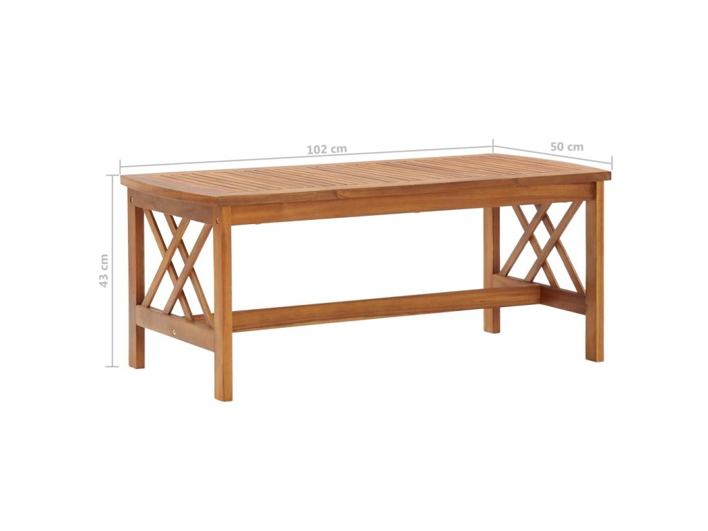 Set zahradního nábytku je zhotovený z masivního akáciového dřeva s olejovou úpravou, je stabilní a má dlouhou životnost. Tlusté podušky na sedák a opěradlo poskytují měkké posezení. Konferenční stolek s masivní dřevěnou stolní deskou s lamelovým designem poslouží jako perfektní odkládací plocha pro vaše občerstvení, mísy s ovocem, dekorativní předměty a další nezbytnosti. Na lavičce s lehce zaobleným opěradlem a loketními opěrkami se velmi pohodlně sedí.