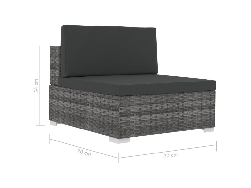 Tato polyratanová sedací souprava sestává ze 2 rohových pohovek, 1 středové pohovky, 5 polštářů za záda a 3 podušek na sedáky. Pomůže vám vytvořit stylové posezení na vaší zahradě či terase.