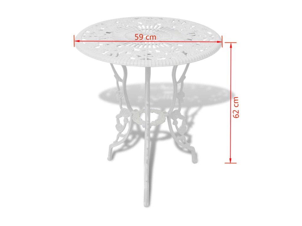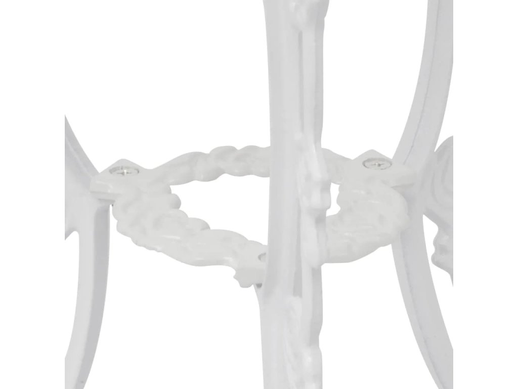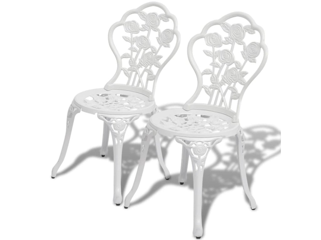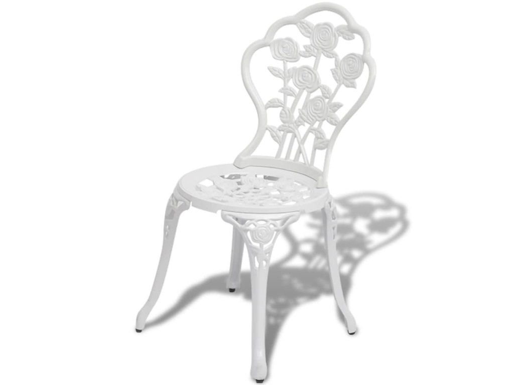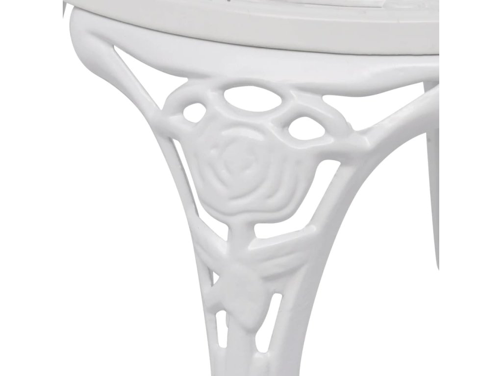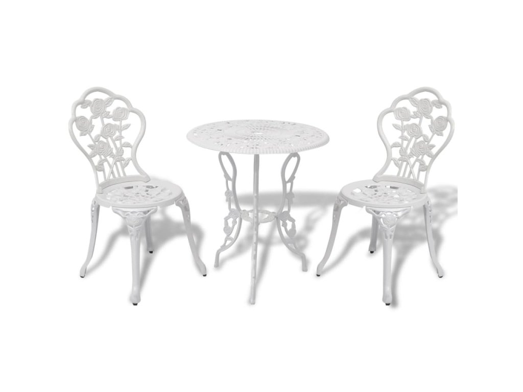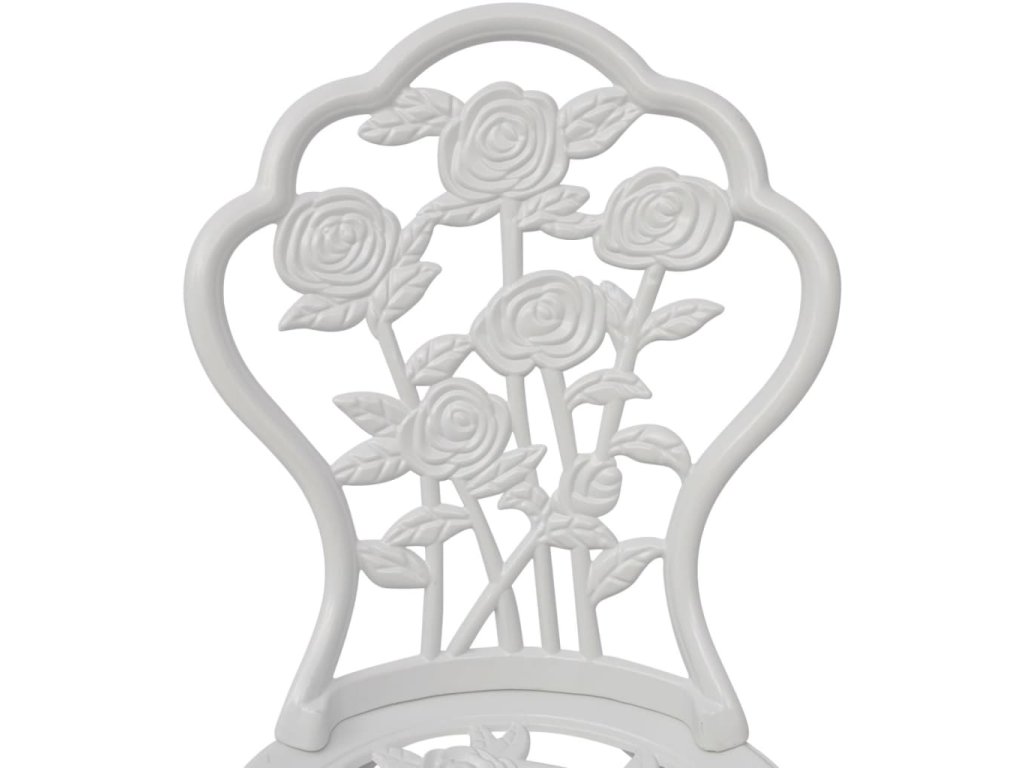 Bistro set je vyrobený z vysoce kvalitního litého hliníku, který je odolný vůči povětrnostním vlivům a vysoce rezistentní. Litinové nohy dodávají nábytku robustnost. Do detailu propracované květinové vzoru dodají každé zahradě, dvoru či zimní zahradě romantický nádech.