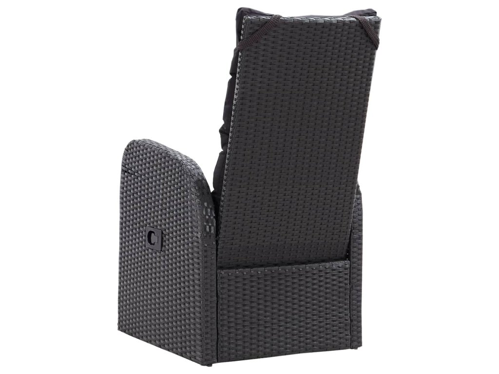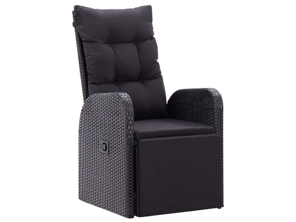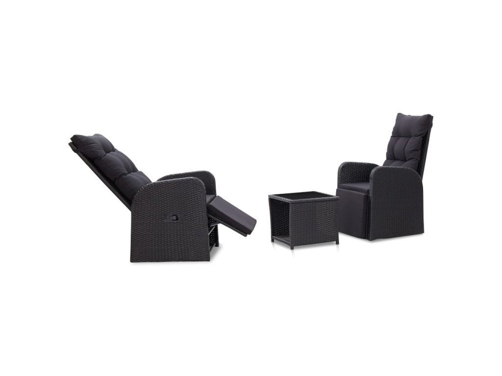 Nastavitelné opěradlo a podnožka polohovacích křesel vám umožní se pohodlně usadit a zcela se uvolnit. Tato sada venkovního nábytku je vyrobená z PE ratanu, který je odolný vůči klimatickým vlivům, snadno čistí, je velmi trvanlivý a vhodný pro každodenní použití. Ocelový rám s práškovým nástřikem je zárukou, že jsou křesla i stůl velmi pevné a odolné. Stůl má skleněnou horní desku. Polohovací židle vám poskytnou veškeré pohodlí, jaké si můžete přát. Opěradlo lze sklopit zatažením za tlačítko na boční straně křesla. Lehká konstrukce umožňuje snadné přesouvání nábytku. Součástí setu jsou rovněž mimořádně pohodlné, silně polstrované podušky na sedáky, jež se postarají o vaše naprosté pohodlí. Polyesterové potahy jsou nenáročné na údržbu a lze je také sejmout a oprat.
