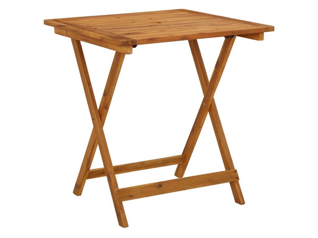 Tento jídelní set je vyrobený z masivního akáciového dřeva, je robustní a stabilní. Olejem napuštěný povrch nábytku snadno vyčistíte navlhčeným hadříkem. Jak jídelní stůl, tak i židle je možné složit, aby zbytečně nepřekážely, když je zrovna nepoužíváte.