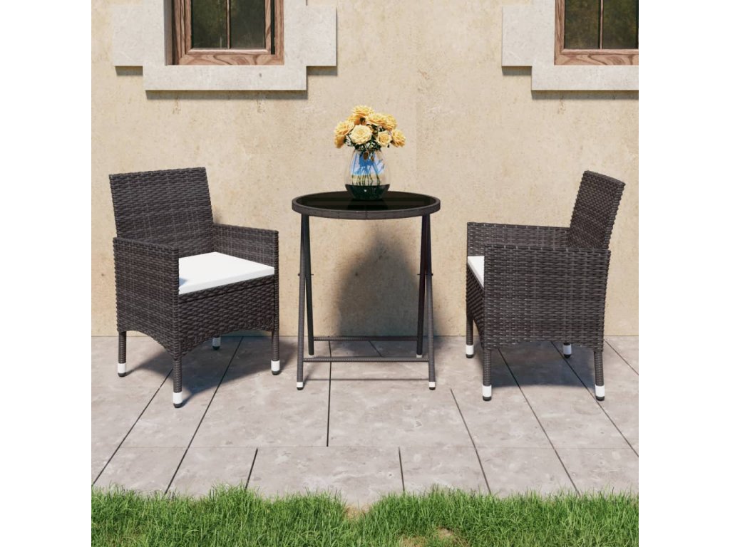 Stůl i židle mají práškově lakovaný ocelový rám je pokrytý klimaticky odolným PE ratanem s ochranou proti UV záření, mají dlouhou životnost a jsou stabilní. Při výrobě židlí se kladl důraz na jejich ergonomický tvar, aby se vám na nich co nejlépe sedělo. Navíc jsou opatřené poduškami pro lepší podporu. Stolní deska z posíleného tvrzeného skla na silném podstavci se snadno čistí a udržuje. Pokud zahradní stolek právě nepoužíváte, můžete ho jednoduše sklopit, a ušetřit tak místo.