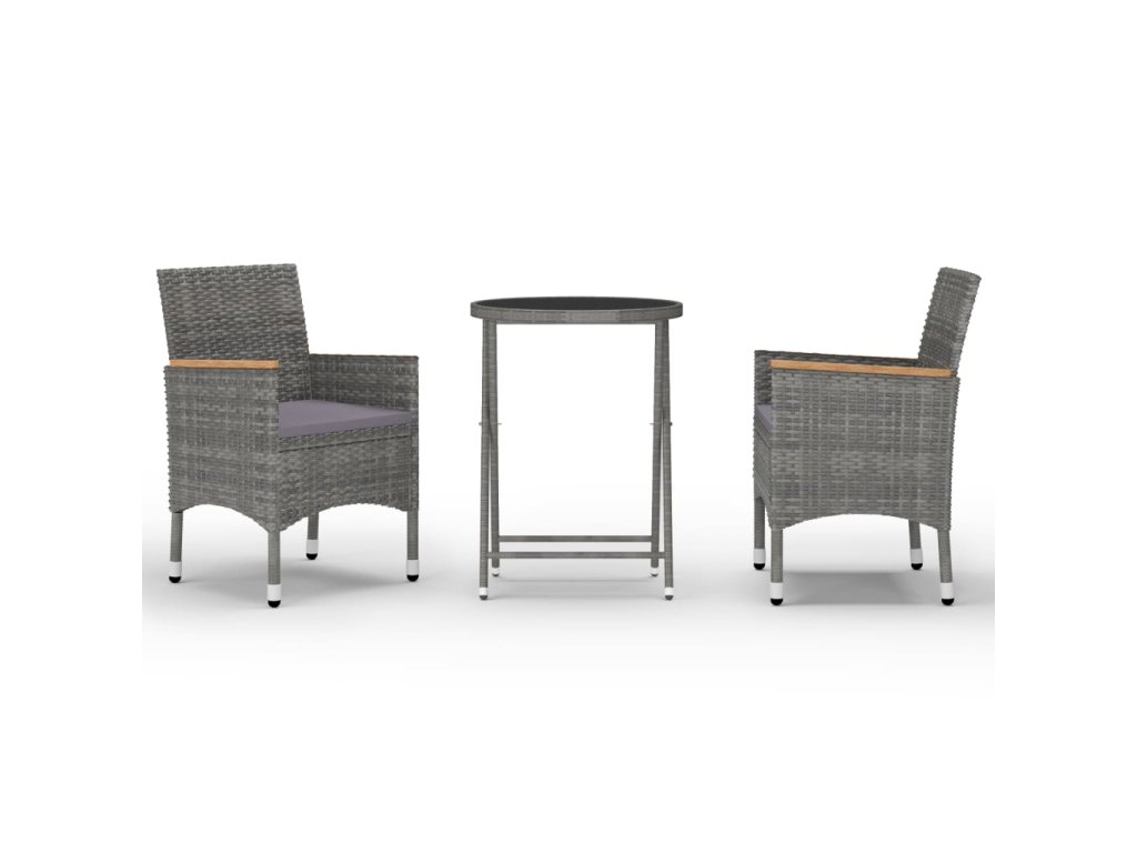 Marketos 3dílný zahradní bistro set polyratan a tvrzené sklo šedý