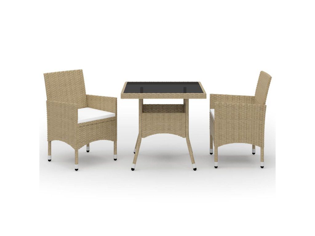 Marketos 3dílný zahradní jídelní set béžový polyratan a sklo
