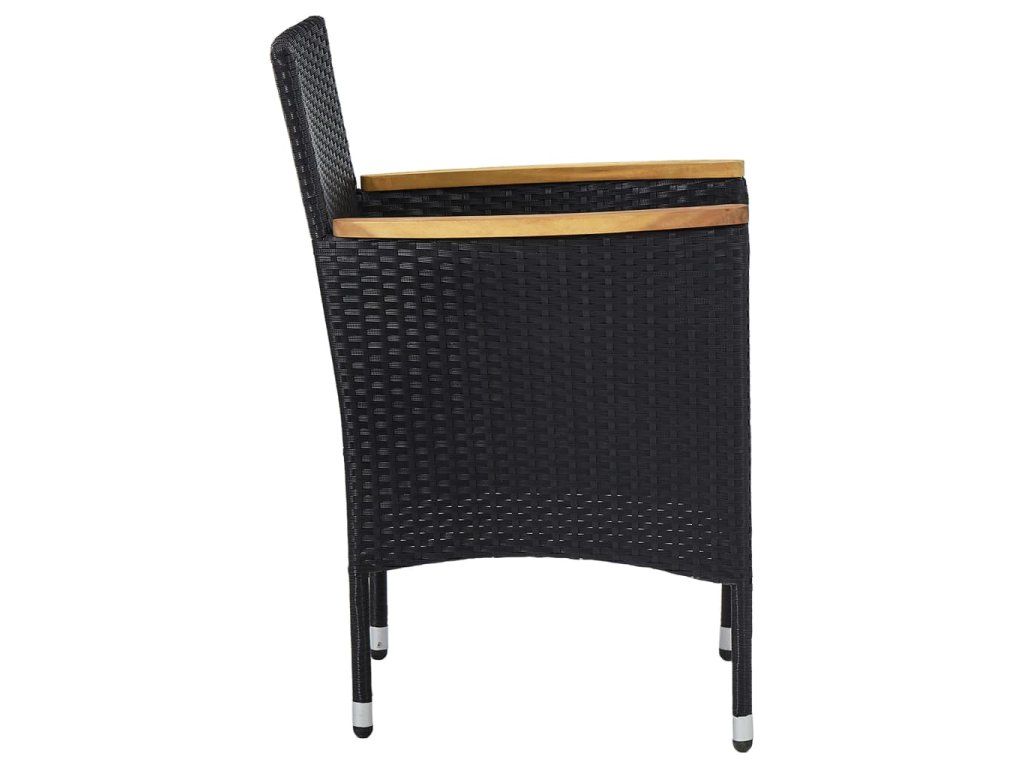 Marketos 3dílný zahradní jídelní set černý polyratan a akáciové dřevo