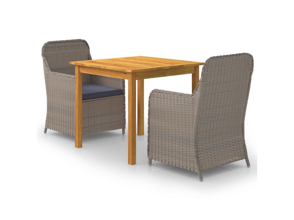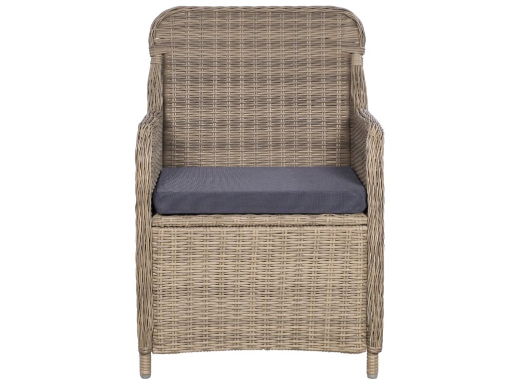 Jídelní stůl je zhotovený z masivního akáciového dřeva s olejovaným povrchem, takže je stabilní, odolný a nenáročný na údržbu. Jídelní židle mají rám z práškově lakované oceli, opletený PE ratanem, který výborně vzdoruje klimatickým vlivům. Dlouho vám proto vydrží a snadno je očistíte. Ergonomický tvar spolu s hustě polstrovanými poduškami vám při sezení zaručí maximální pohodlí. Polyesterové potahy podušek nevyžadují téměř žádnou údržbu a dají se jednoduše stáhnout a oprat.