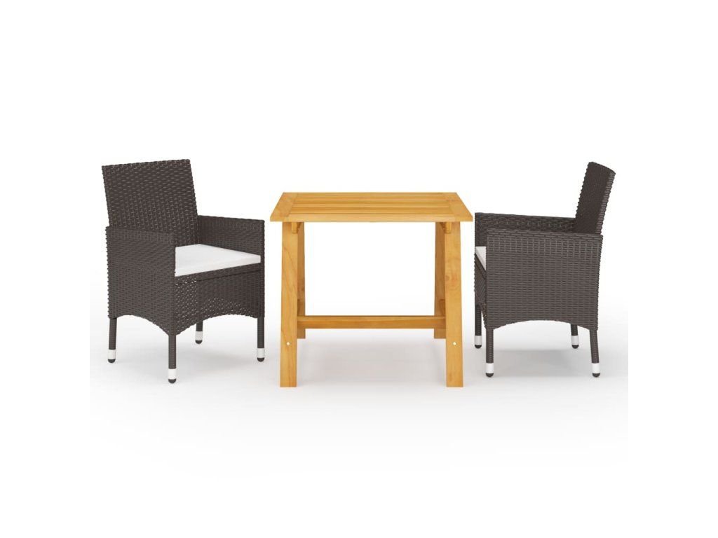 Jídelní stůl je zhotovený z masivního akáciového dřeva s olejovaným povrchem, takže je stabilní, odolný a nenáročný na údržbu. Jídelní židle mají rám z práškově lakované oceli, opletený klimaticky odolným PE ratanem, jsou tudíž odolné a snadno se čistí. Zahradní židle mají zaoblená opěradla a područky, což přispívá k většímu pohodlí, stejně jako jejich ergonomický tvar. Každé křeslo je opatřené odnímatelnou, hustě polstrovanou poduškou, která vám při odpočinku zaručí mimořádný komfort.