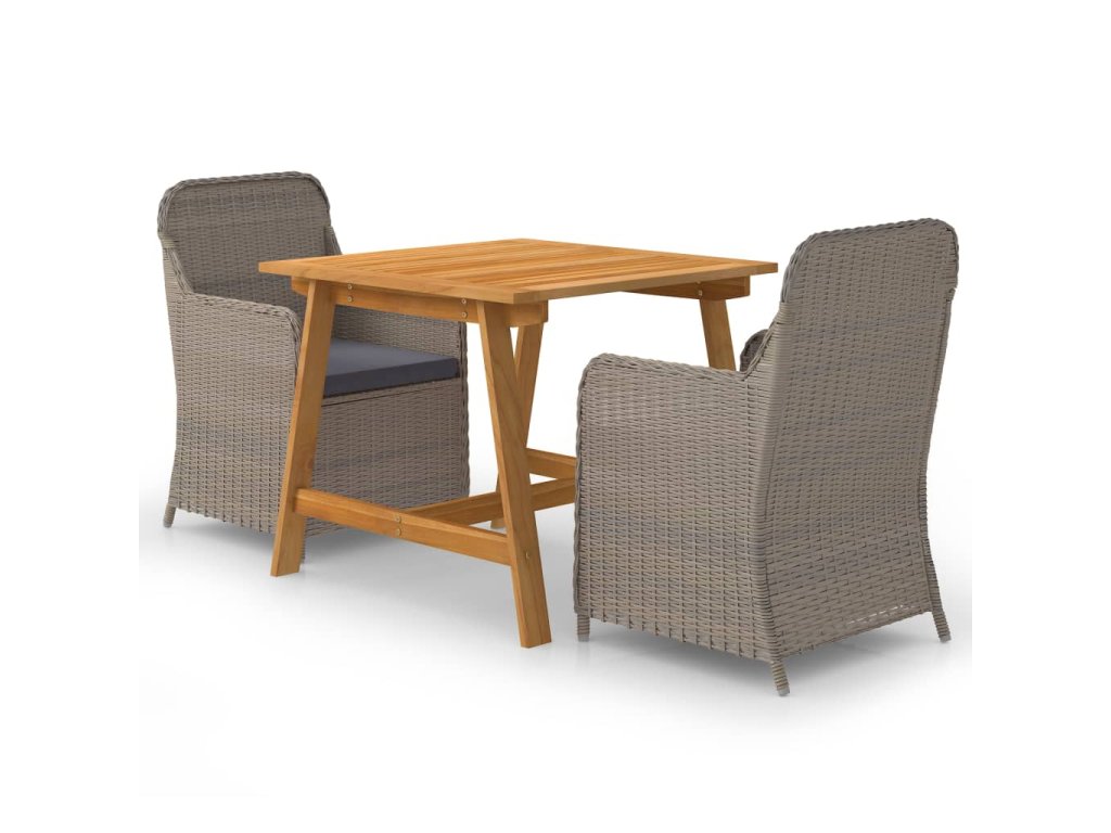 Jídelní stůl je zhotovený z masivního akáciového dřeva s olejovaným povrchem, takže je stabilní, odolný a nenáročný na údržbu. Jídelní židle mají rám z práškově lakované oceli, opletený PE ratanem, který výborně vzdoruje klimatickým vlivům. Dlouho vám proto vydrží a snadno je očistíte. Ergonomický tvar spolu s hustě polstrovanými poduškami vám při sezení zaručí maximální pohodlí. Polyesterové potahy podušek nevyžadují téměř žádnou údržbu a dají se jednoduše stáhnout a oprat.