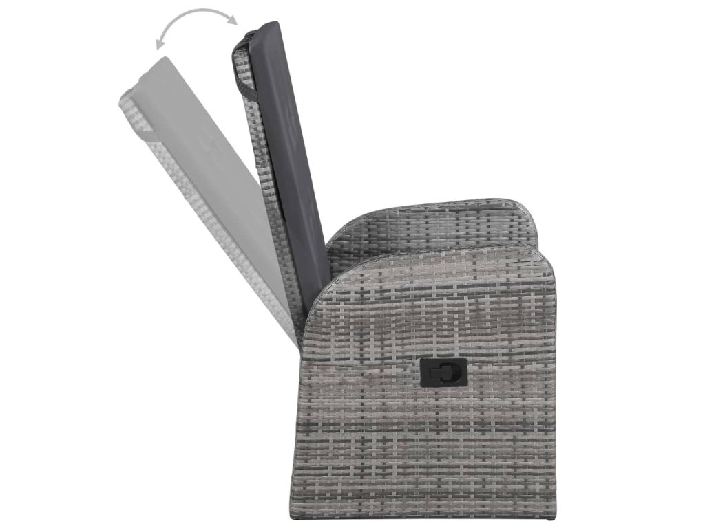 Jídelní stůl je zhotovený z masivního akáciového dřeva s olejovaným povrchem, takže je stabilní, odolný a nenáročný na údržbu. Jídelní židle mají rám z práškově lakované oceli, opletený PE ratanem, který výborně vzdoruje klimatickým vlivům. Dlouho vám proto vydrží a snadno je očistíte. Opěradlo lze sklopit zatažením za tlačítko na boku. Židle mají lehkou konstrukci, není tedy problém je přesunout, kam potřebujete. Navíc jsou opatřené mimořádně pohodlnými, hustě polstrovanými poduškami pro maximální komfort. Jejich polyesterové potahy nevyžadují téměř žádnou údržbu a dají se stáhnout a oprat.