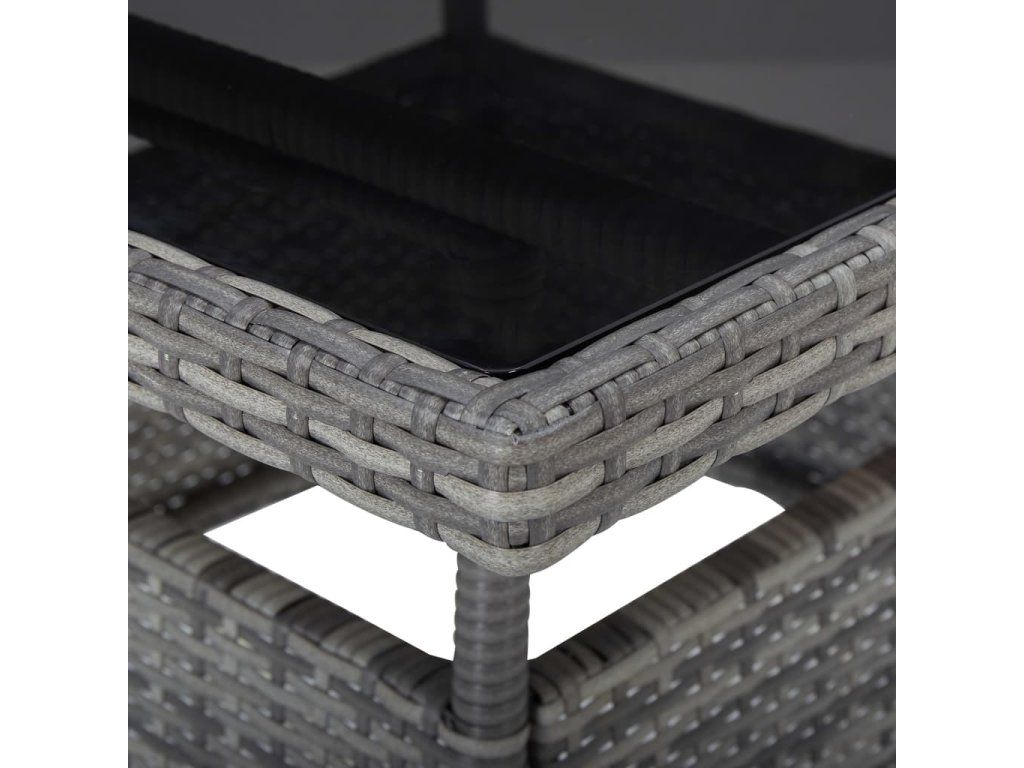 - Materiál: polyratan, akáciové dřevo s olejovou povrchovou úpravou, tvrzené sklo, práškově lakovaná ocel