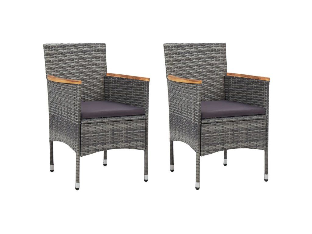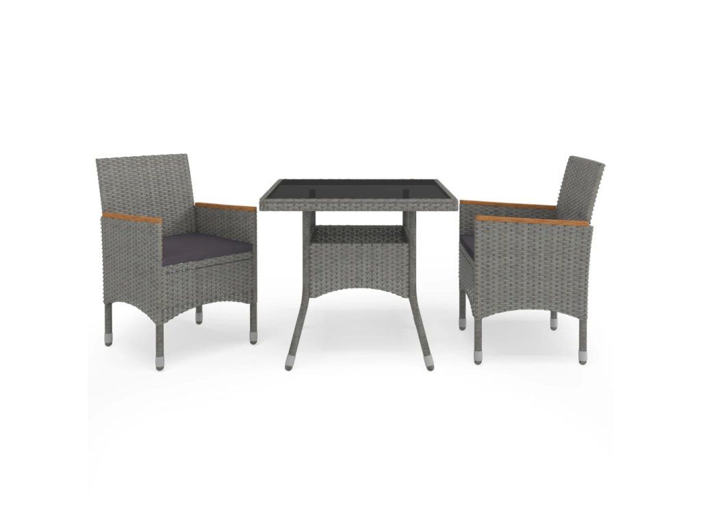 Marketos 3dílný zahradní jídelní set šedý polyratan a akáciové dřevo