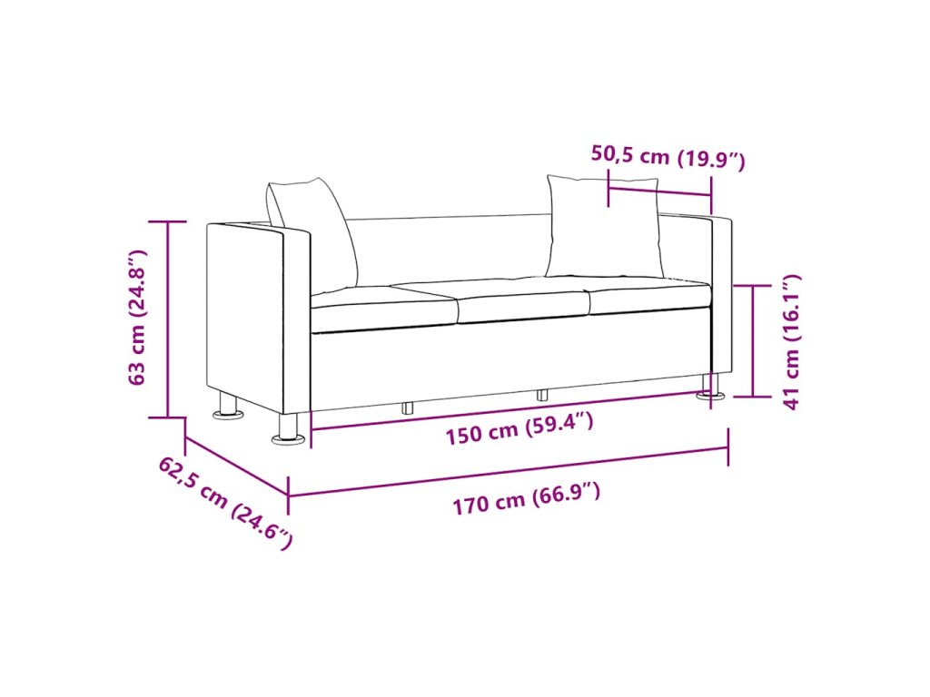 Balení obsahuje 1 x trojmístnou pohovku a 2 x volný polštář.