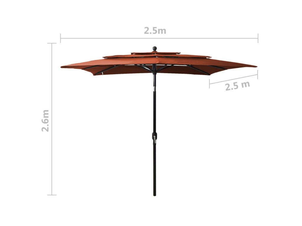 Marketos 3stupňový zahradní slunečník hliníková tyč terakota 2,5 x 2,5 m