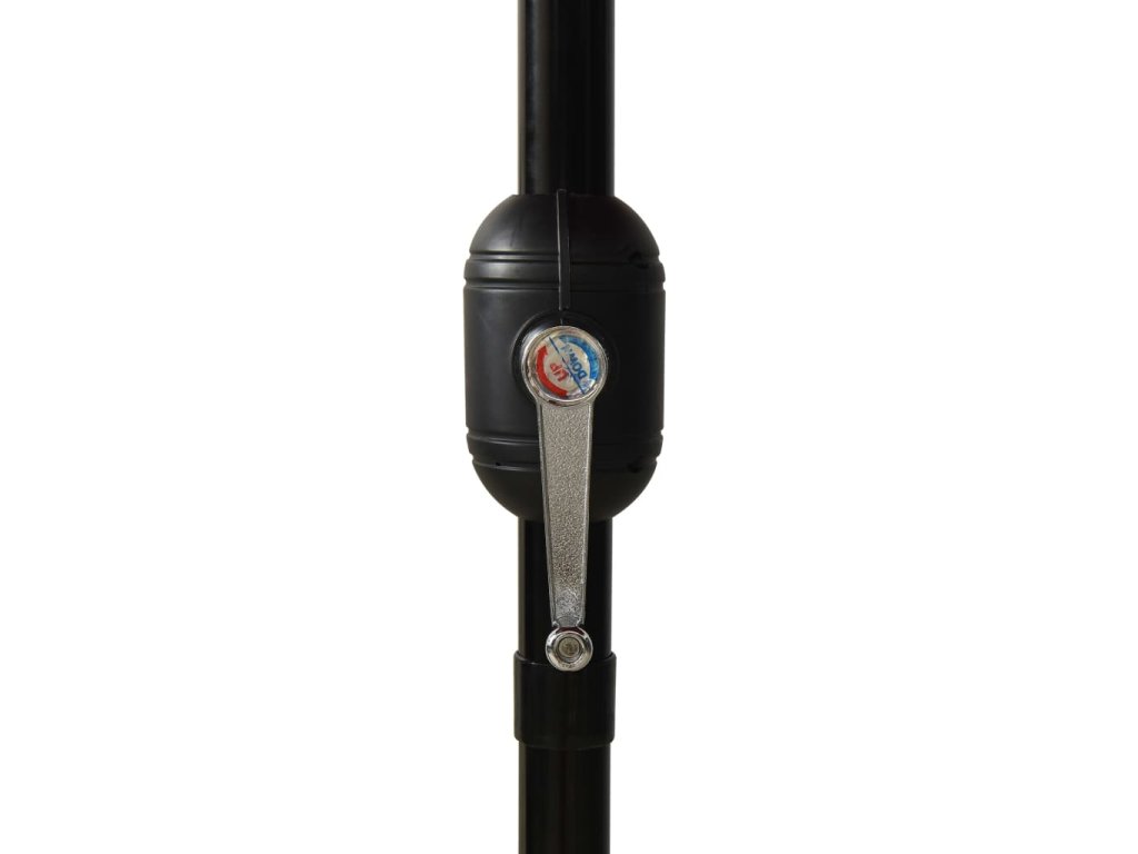 Zahradní slunečník je vyrobený z polyesteru, který nebledne a skvěle odolává UV záření, poskytne vám tedy optimální ochranu proti slunci. Stabilitu zajišťují práškově lakovaná hliníková tyč a žebra. Slunečník je vybavený klikovým mechanismem a funkcí naklápění, je skládací a přenosný. Můžete ho zasadit do svého stávajícího stojanu nebo doprostřed stolů s otvorem na slunečník.
