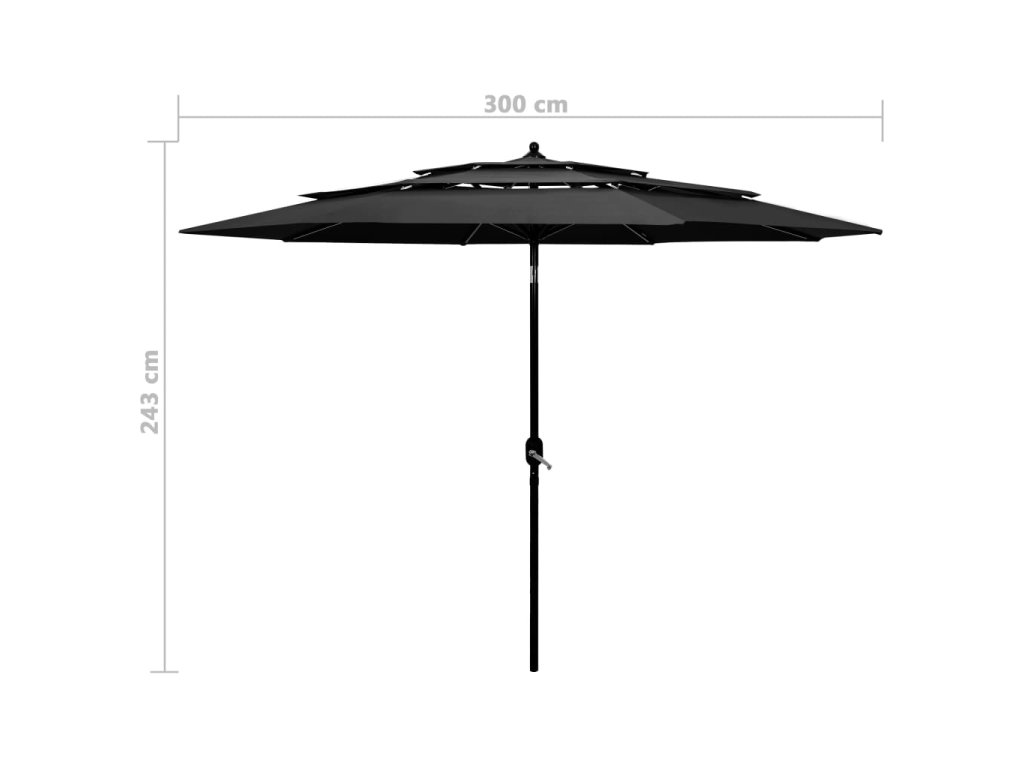 Marketos 3stupňový zahradní slunečník s hliníkovou tyčí antracitový 3 m