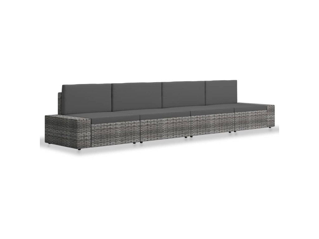 Posezení z klimaticky odolného PE ratanu se snadno čistí, je odolné a vhodné pro každodenní použití. Pohovka má robustní práškově lakovaný ocelový rám, který má velmi dlouhou životnost. Vyjímatelné podušky na sedák a opěradlo jsou silně polstrované pro optimální pohodlí při sezení. Sedací souprava také zaujme svým modulárním designem, který umožňuje všechny části soupravy uspořádat a přizpůsobit podle potřeby.
