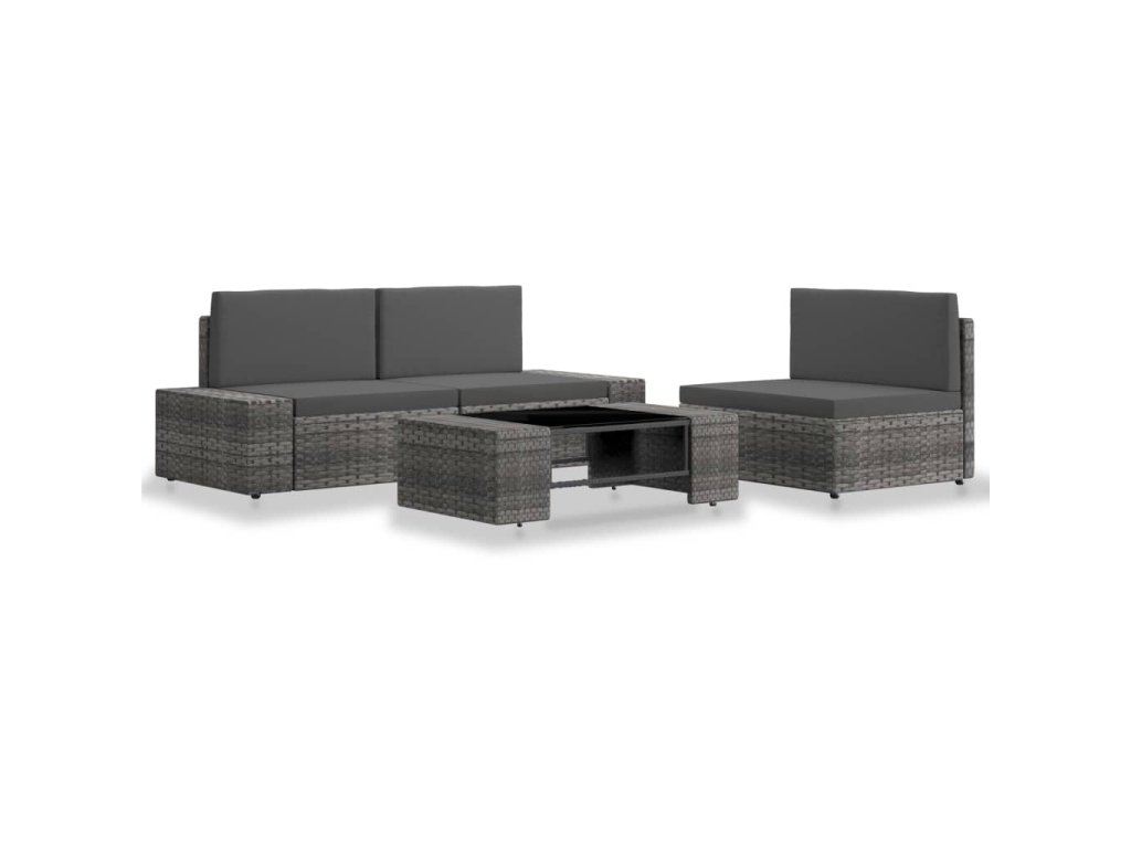Posezení z klimaticky odolného PE ratanu se snadno čistí, je odolné a vhodné pro každodenní použití. Pohovka má robustní práškově lakovaný ocelový rám, který má velmi dlouhou životnost. Vyjímatelné podušky na sedáky a opěradla jsou silně polstrované pro optimální pohodlí při sezení. Konferenční stolek s minimalistickým designem je ideální pro odkládání vašich knih, časopisů, čaje a čehokoliv, co potřebujete pro uklidňující chvíle relaxace. Sedací souprava také zaujme svým modulárním designem, který umožňuje všechny části soupravy uspořádat a přizpůsobit podle potřeby.
