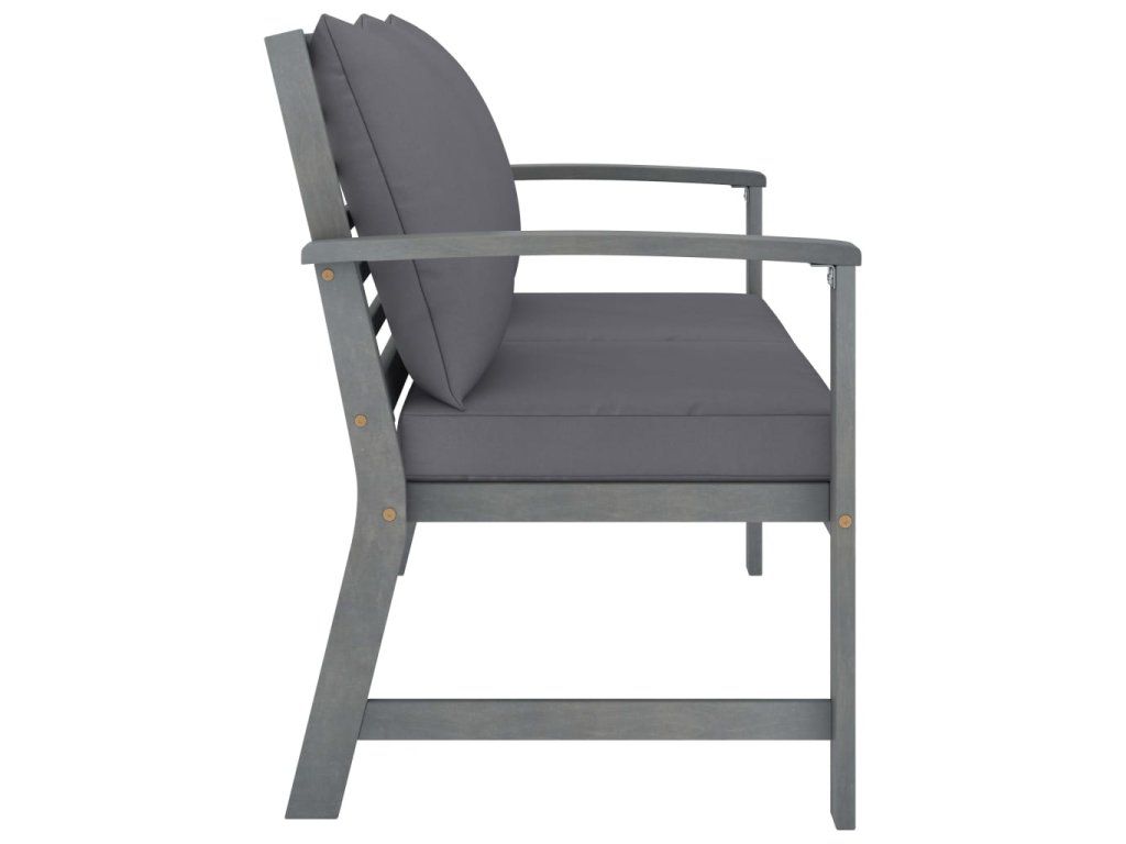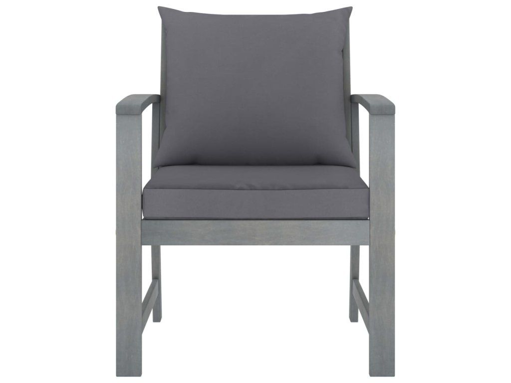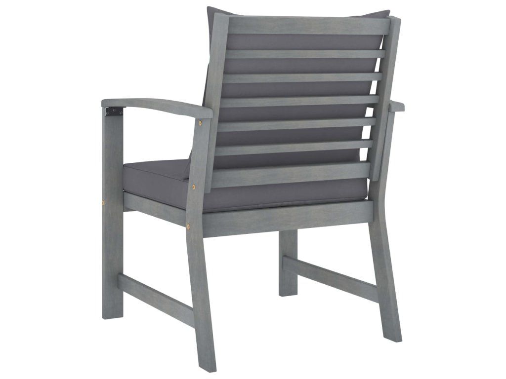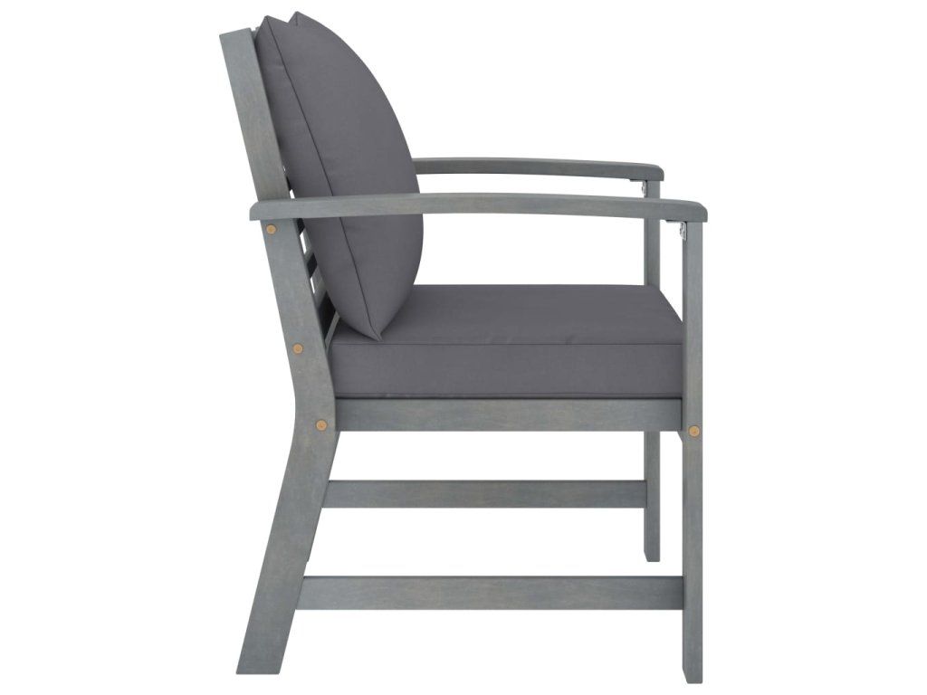 - Materiál: masivní akáciové dřevo s šedou povrchovou úpravou, textil (100% polyester)