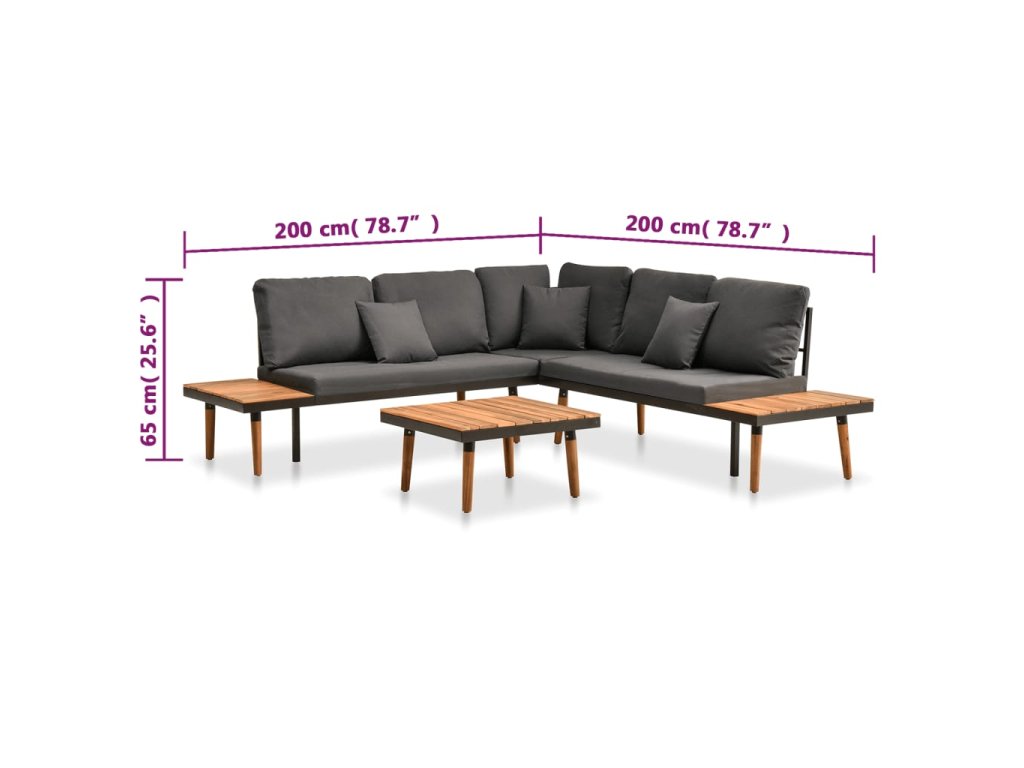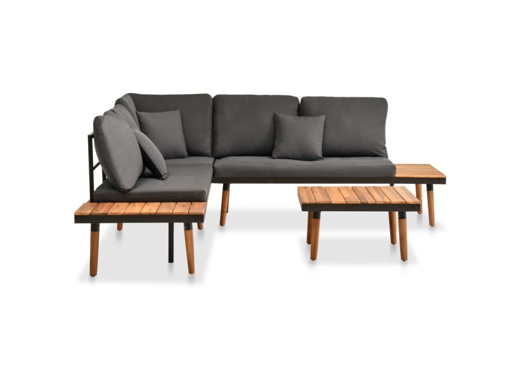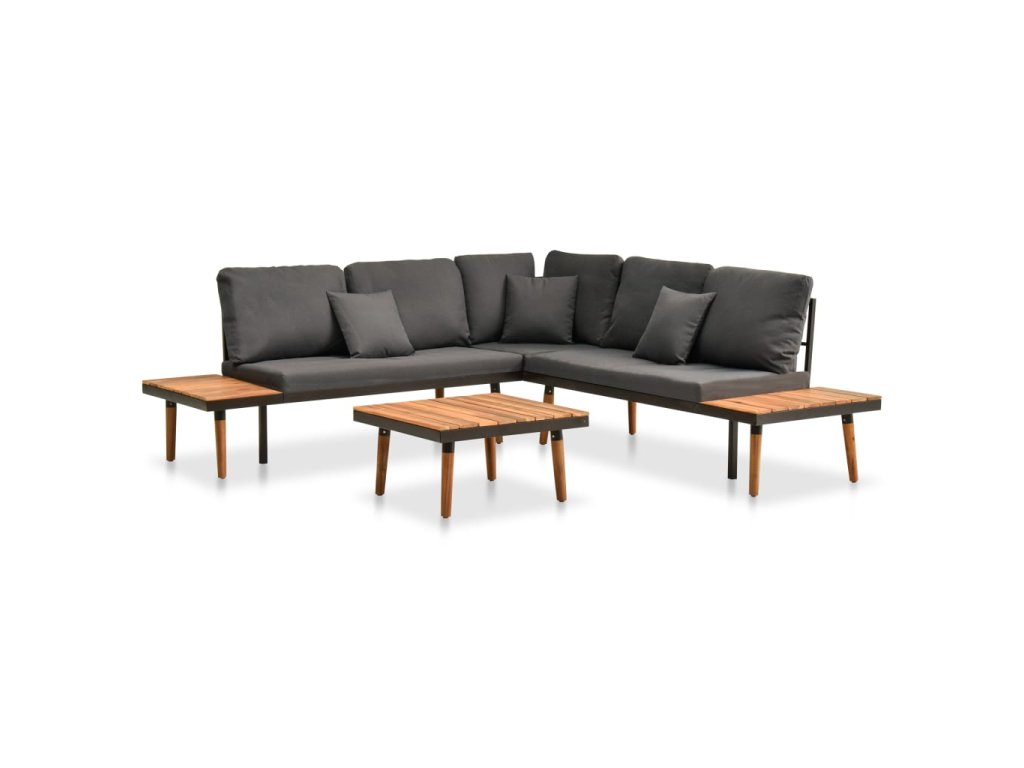 Naše sada zahradního nábytku se snadno čistí a jen tak se nepoškodí. Je vyrobená z masivní akácie, což je tropické tvrdé dřevo, které skvěle vzdoruje povětrnostním vlivům a vydrží dlouhá léta používání. Zásluhou pevného ocelového rámu je souprava velmi stabilní a odolná. Na malé dřevěné části si navíc můžete položit drobné občerstvení, nápoje, šálky na čaj, knihy nebo jiné menší předměty. Součástí sady jsou i mimořádně pohodlné, hustě polstrované podušky a polštáře. Polyesterové potahy jsou nenáročné na údržbu a lze je bez obtíží sejmout a vyprat.