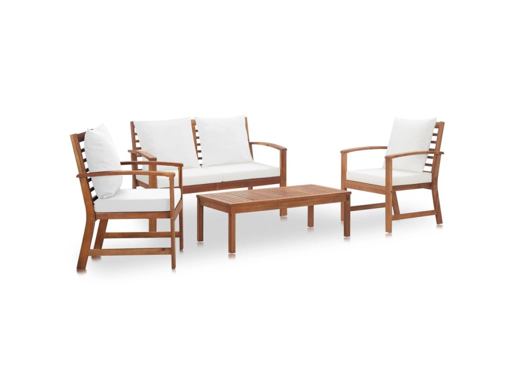 Sada zahradního nábytku je vyrobena z vysoce kvalitního masivního akáciového dřeva. Jedná se o tvrdé dřevo z tropů, které je odolné vůči povětrnostním vlivům a hodně toho vydrží. Díky olejové povrchové úpravě má nábytek na terasu hřejivý odstín a nevyžaduje téměř žádnou údržbu. Součástí balení jsou i podušky, které vám poskytnou mimořádné pohodlí.