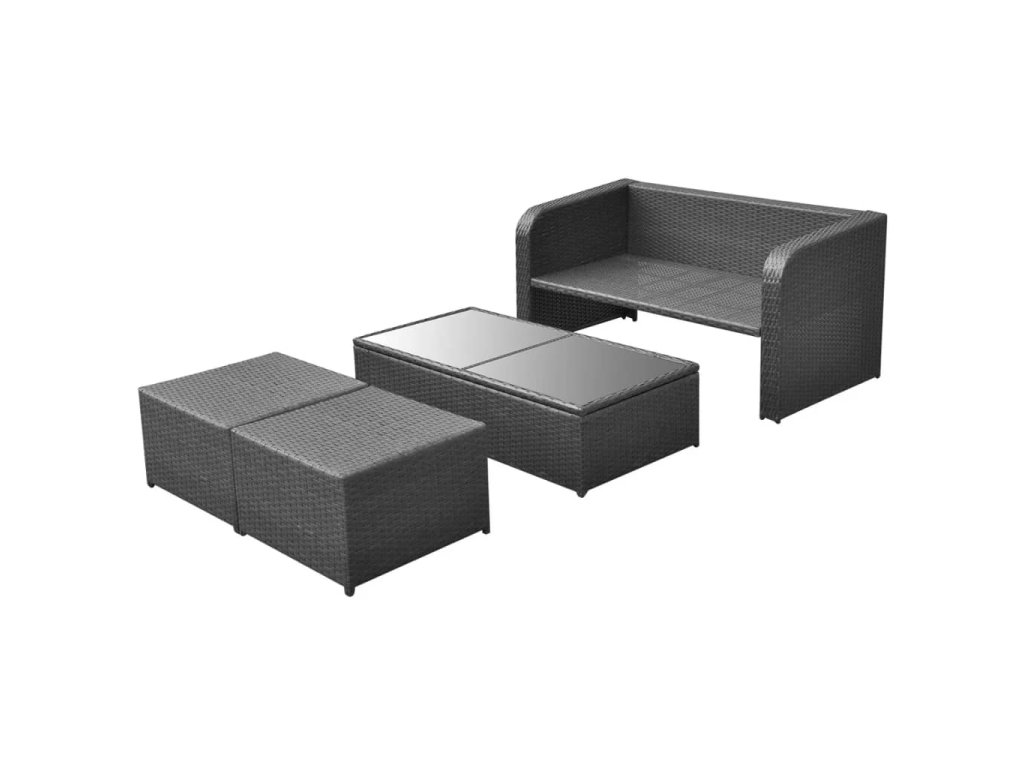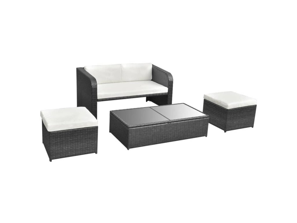 Marketos 4dílná zahradní sedací souprava s poduškami polyratan černá