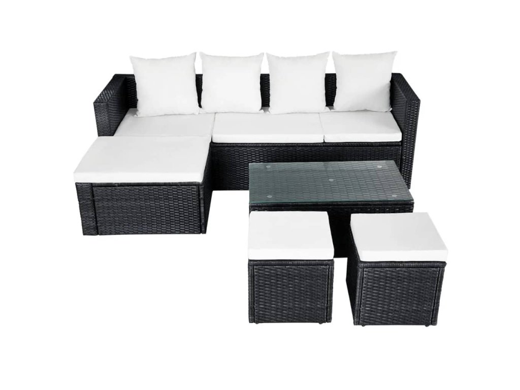 Snadno omyvatelná a odolná zahradní souprava nábytku je vyrobena z odolného a voděodolného PE ratanu, takže je vhodná pro každodenní použití v exteriéru. Ocelové rámy s práškovým nástřikem činí soupravu velmi robustní a odolnou. Díky lehké konstrukci ji lze snadno přemisťovat.