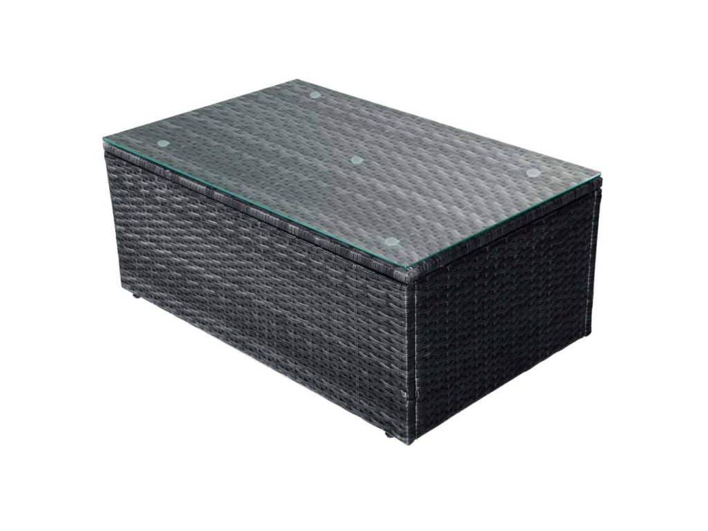 - Materiál: PE ratan + ocelový rám s práškovým nástřikem + skleněná stolní deska