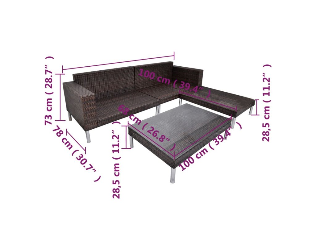 Celá souprava nábytku je určená k celoročnímu venkovnímu použití. Protože je vyrobena z PE ratanu, odolného vůči povětrnostním vlivům, dá se tato sedací souprava snadno čistit, je vysoce odolná a vhodná pro každodenní používání. Sedací souprava je opatřena robustními ocelovými rámy, které jsou odolné a rezistentní. Má rovněž nízkou hmotnost a je modulární, takže je dokonale přizpůsobivá a můžete ji snadno přemisťovat dle svých potřeb. Silné vyjímatelné matrace jsou velmi pohodlné a pratelné.