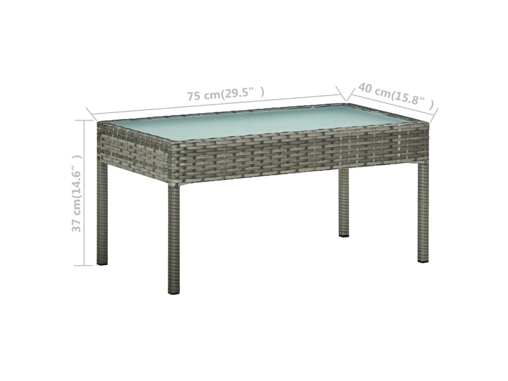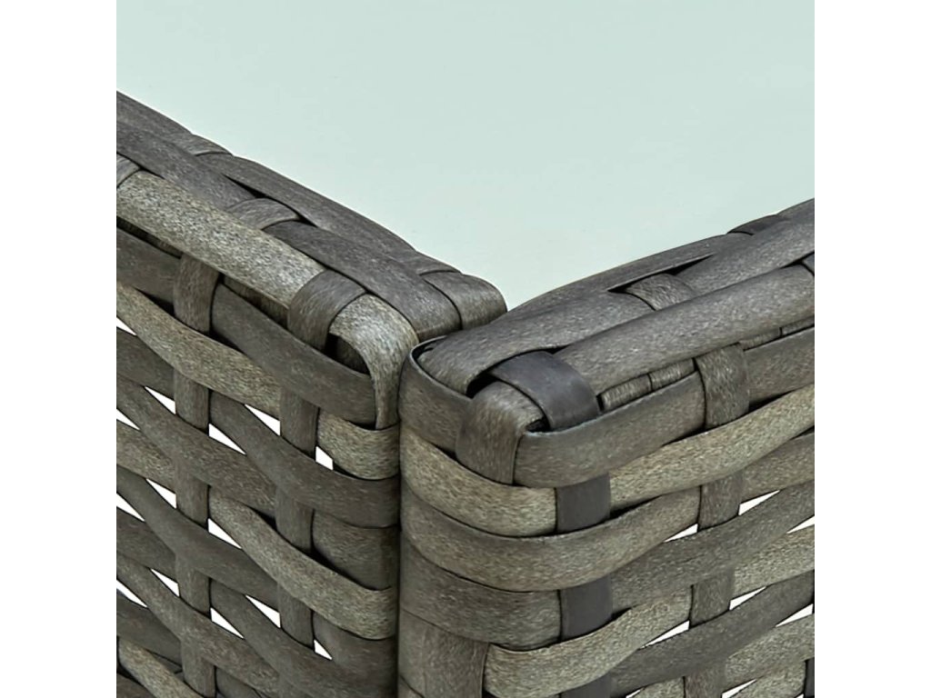 - Materiál: PE ratan, práškově lakovaná ocel, sklo, látka (100% polyester)