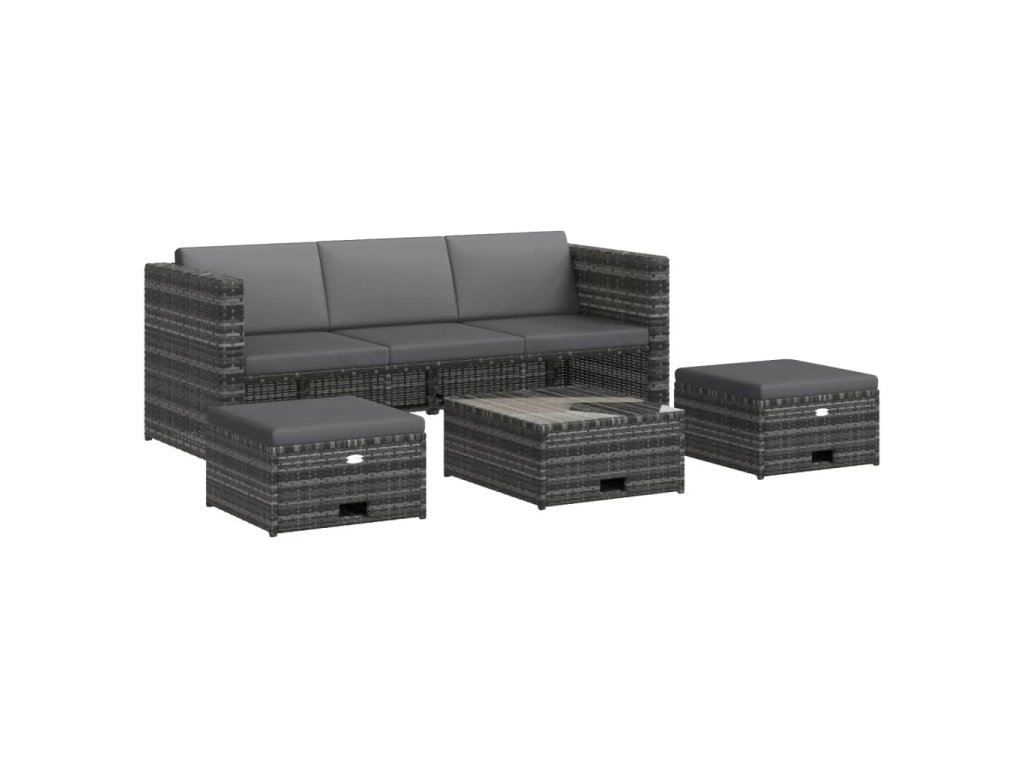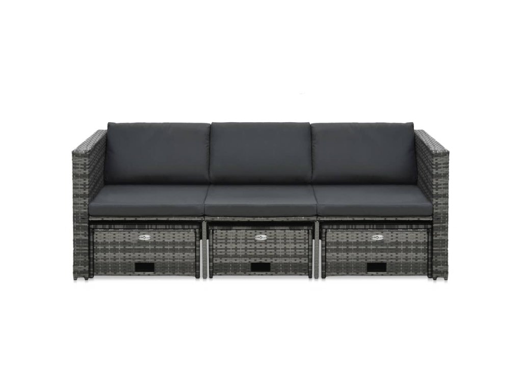 Tato souprava zahradního nábytku je zhotovená z ratanu, který je odolný vůči vodě a povětrnostním vlivům a snadno se čistí, ale je také odolný vůči opotřebení, a proto vhodný pro každodenní používání. Stolní deska z tvrzeného skla se rovněž snadno čistí vlhkým hadříkem. Sedací souprava má robustní ocelové rámy s práškovým nástřikem, které zaručují dlouhou životnost. Zároveň mají nízkou hmotnost, takže tuto modulární sadu můžete snadno přemisťovat. Tlusté odnímatelné polstry na sedáky a opěradla jsou velmi pohodlné a pratelné. Stolek a podnožky mají velké úložné prostory na všechny vaše časopisy, drobnosti a další věci, abyste je mohli mít uklizené, a přitom po ruce. Stůl a podnožky se dají úhledně zasunout pod pohovku pro úsporu místa, když je zrovna nepoužíváte. Jejich vysouvání a zasouvání je velmi snadné. Sestavení soupravy je snadné.