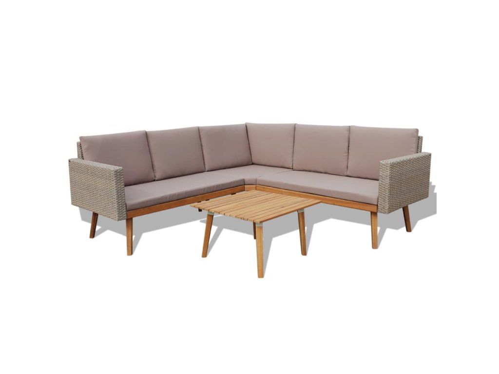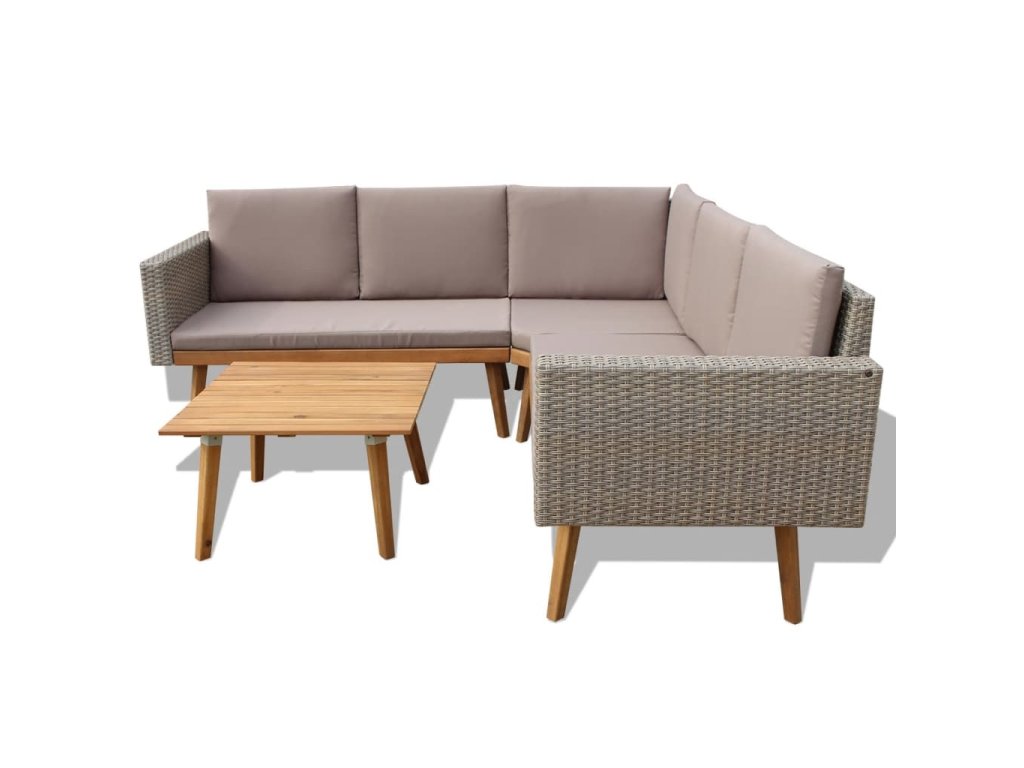 Snadno čistitelný a odolný zahradní nábytek je vyroben z odolného a nepromokavého PE ratanu, takže je vhodný pro každodenní venkovní použití. Dřevěný rám vyrobený ze dřeva s olejovou povrchovou úpravou činí soupravu velmi robustní a odolnou. Tato sada je dodávána s velmi pohodlnými, silně polstrovanými polstry na sedáky a opěradla. Povlaky na polstry jsou opatřeny zipem a jsou pratelné.
