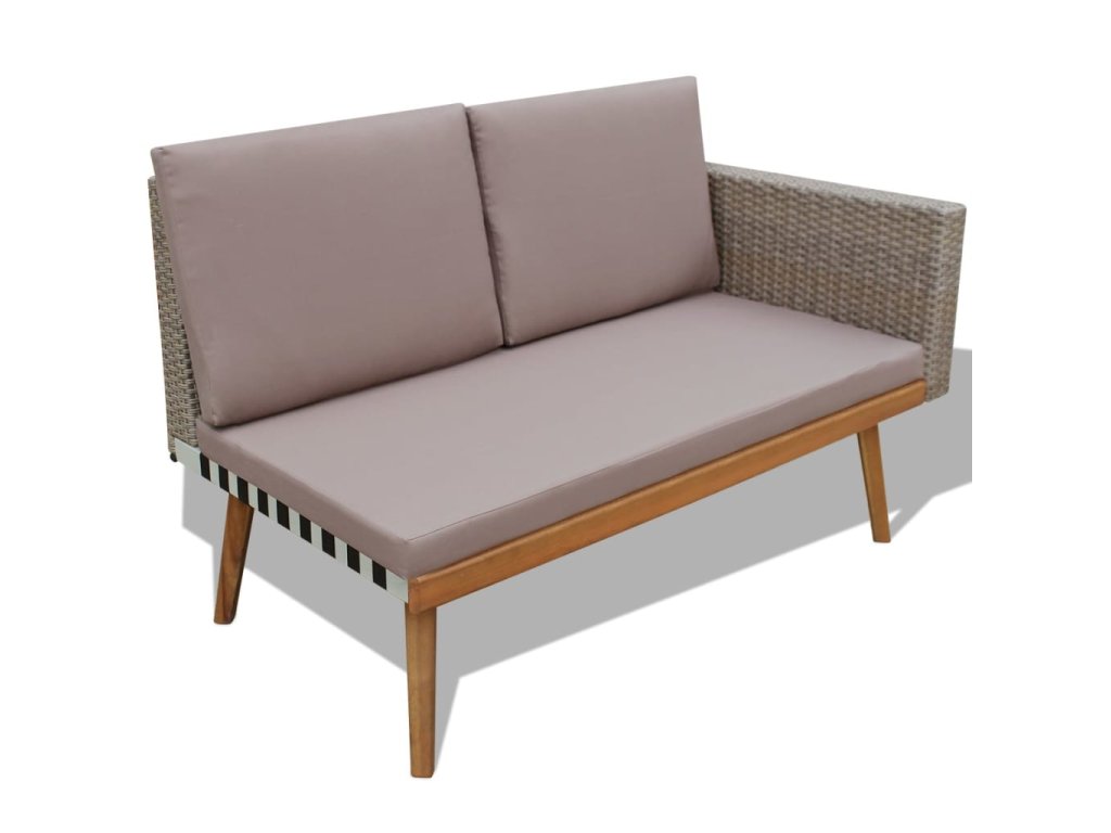 - Materiál pohovky: PE ratan + ocel + dřevo s olejovou úpravou