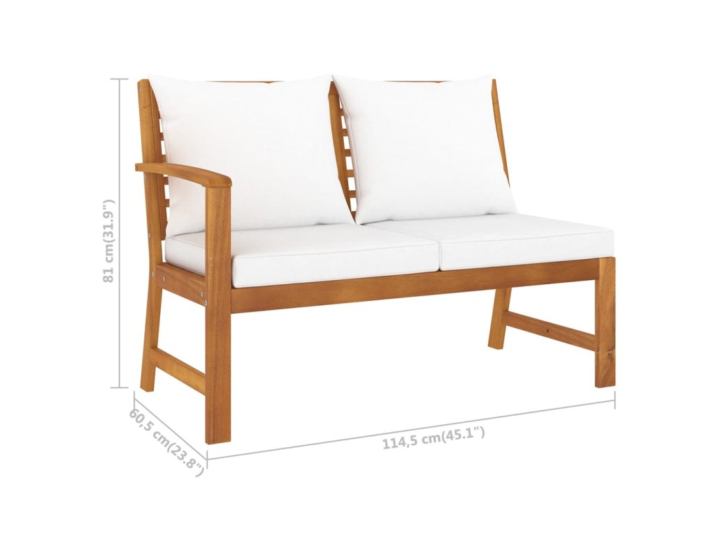 Sedací souprava s masivním akáciovým rámem je pevná, robustní a odolná. Akáciové dřevo je napuštěné olejem, nábytek je tudíž vhodný pro venkovní použití. Součástí soupravy je také konferenční stolek s unikátním lamelovým designem. Můžete si na něj odkládat občerstvení, nápoje, šálky s čajem, knihy apod. a mít vše potřebné na dosah ruky. Sadu dodáváme s vysoce pohodlnými, hustě polstrovanými poduškami na sedák a opěradlo. Polyesterové potahy na podušky se snadno udržují, je možné je sejmout a vyprat. Set má modulární design, takže všechny díly je možné přestavět a upravit podle vašich potřeb.